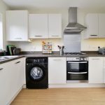 The kitchen, positioned at the front of the property, is fitted with a modern range of base and eye-level units providing ample storage, complemented by an eye catching work surface. Integrated appliances include a double oven with gas hob with extractor hood, fridge/freezer, and dishwasher, with space and plumbing available for a washing machine.