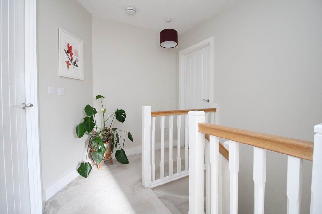 The first-floor landing gives access to two double bedrooms, a single bedroom, an airing/storage cupboard, and the family bathroom. The master bedroom benefits from a dedicated dressing area and a private en-suite shower room, featuring a Velux window and a contemporary white suite comprising a double shower enclosure, WC, pedestal wash hand basin, heated towel radiator and part-tiled walls.
