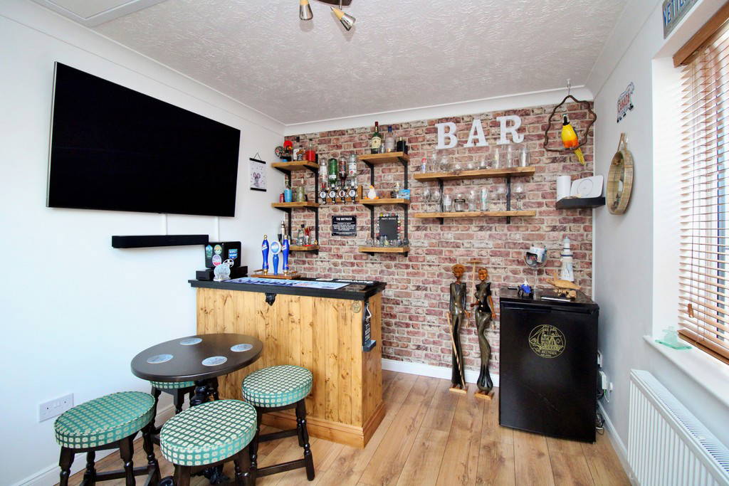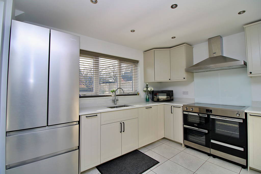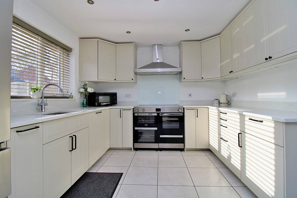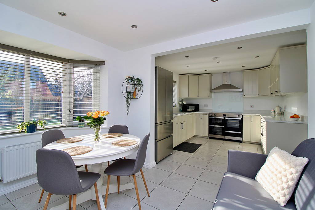 At the heart of the property lies the open-plan kitchen and dining room, which has been completely refitted in 2022, featuring a contemporary design complemented by high-quality quartz work surfaces. The space is further enhanced by a rear-facing bay window, flooding the room with natural light and making it ideal for family life and entertaining. Additional ground floor benefits include a separate utility room, a cloakroom/WC, and a ground floor study, which could alternatively be used as a fifth bedroom if required, offering excellent flexibility for home working or multi-generational living.