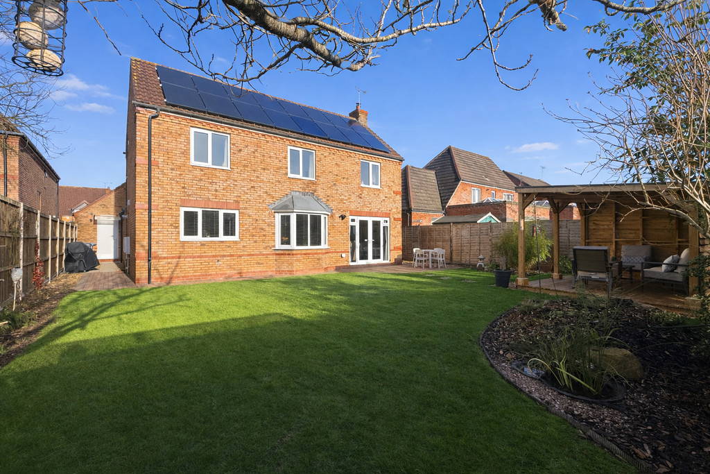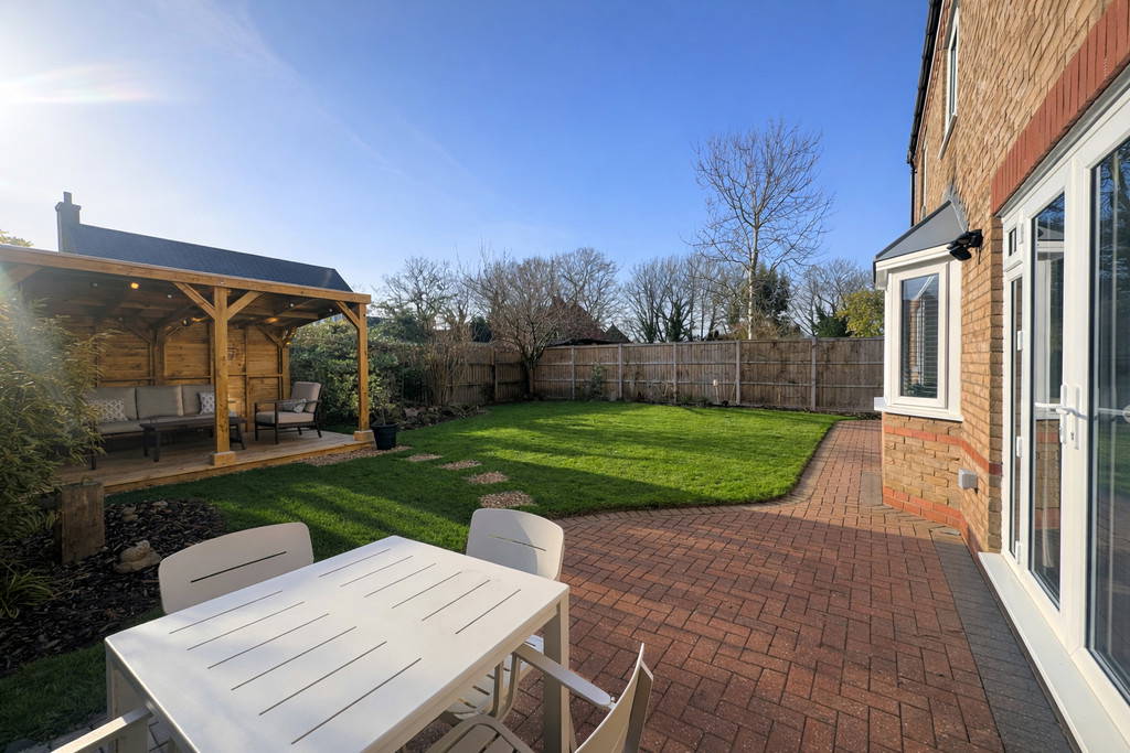 Externally, the property occupies a larger-than-average plot for a home of this style and location, a feature that immediately sets it apart. To the front, there is substantial off-road parking, complemented by a detached double garage which has been further enhanced by the installation of new Hörmann insulated electric garage doors with remote operation, along with a replacement side access door. The rear garden is of a generous size, offering a private and well-maintained outdoor space, complete with a patio area and a covered gazebo with decking, constructed in 2025, creating an excellent setting for outdoor entertaining and year-round enjoyment. Additional improvements include the replacement of boundary fencing with concrete posts and new panels, ensuring privacy and longevity.
