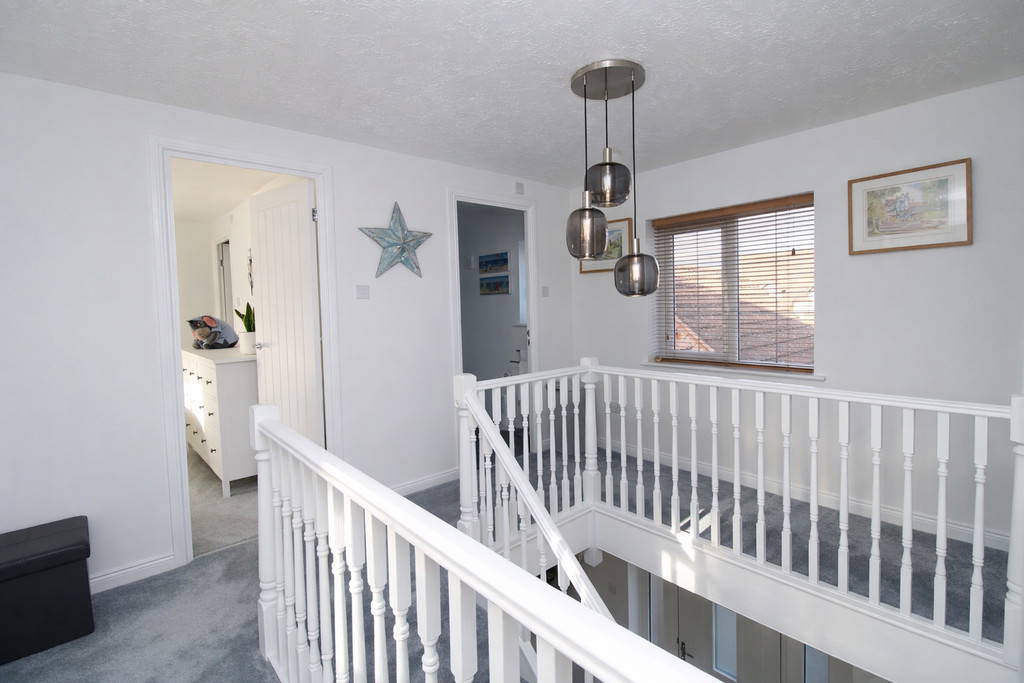 To the first floor, the property offers four well-proportioned bedrooms, all thoughtfully laid out and ideal for family occupation. The principal bedroom benefits from a modern en-suite shower room, while the remaining bedrooms are served by a contemporary family bathroom, completing the first-floor accommodation.