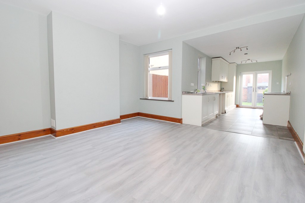 LIVING/DINING AREA 14' 0" x 12' 8" (4.27m x 3.86m) UPVC double glazed window to the rear aspect. Single panel radiator with thermostat control. Understairs storage cupboard with electric consumer unit, electric meter, gas meter and shelving. Wood effect laminate flooring. Open through to: