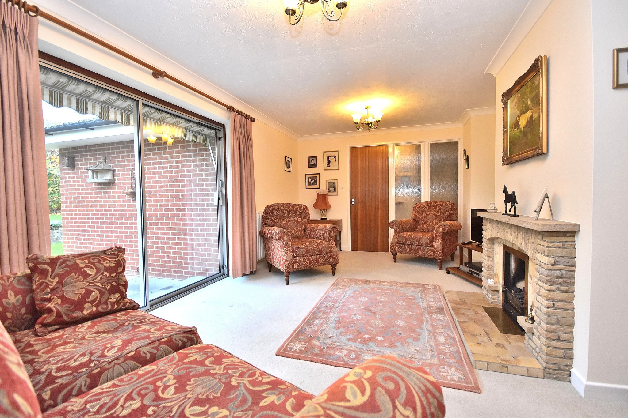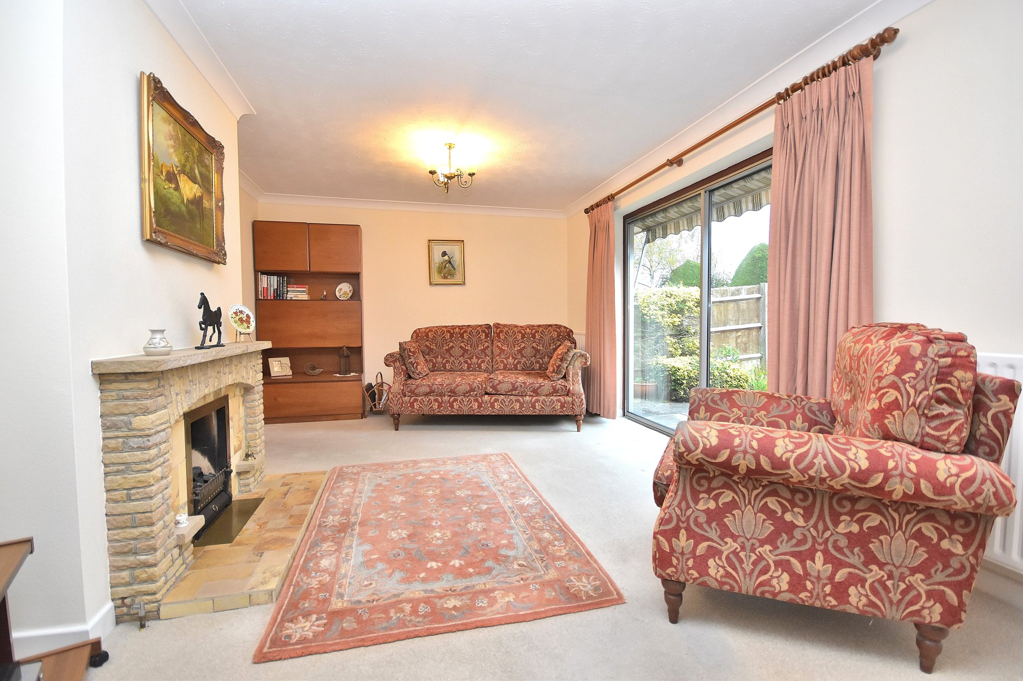 19' 1" x 11' 5" (5.82m x 3.48m) A bright and spacious lounge featuring patio doors opening onto the rear garden, allowing plenty of natural light. The room includes a stone fireplace, neutral décor, and ample space for both seating and media furniture, creating a warm and comfortable living area. Two radiators.
