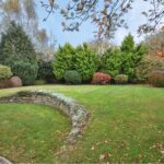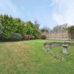 The rear garden is mainly laid to lawn with mature borders and hedging, offering a high degree of privacy and a delightful backdrop of trees and open green space beyond.