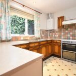 10' 4" x 9' 8" (3.15m x 2.95m) Fitted with a range of wood-effect base and wall units with ample work surfaces and tiled splashbacks. The kitchen includes space for a freestanding cooker and other appliances, with a large front facing window providing views over the front garden.