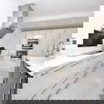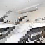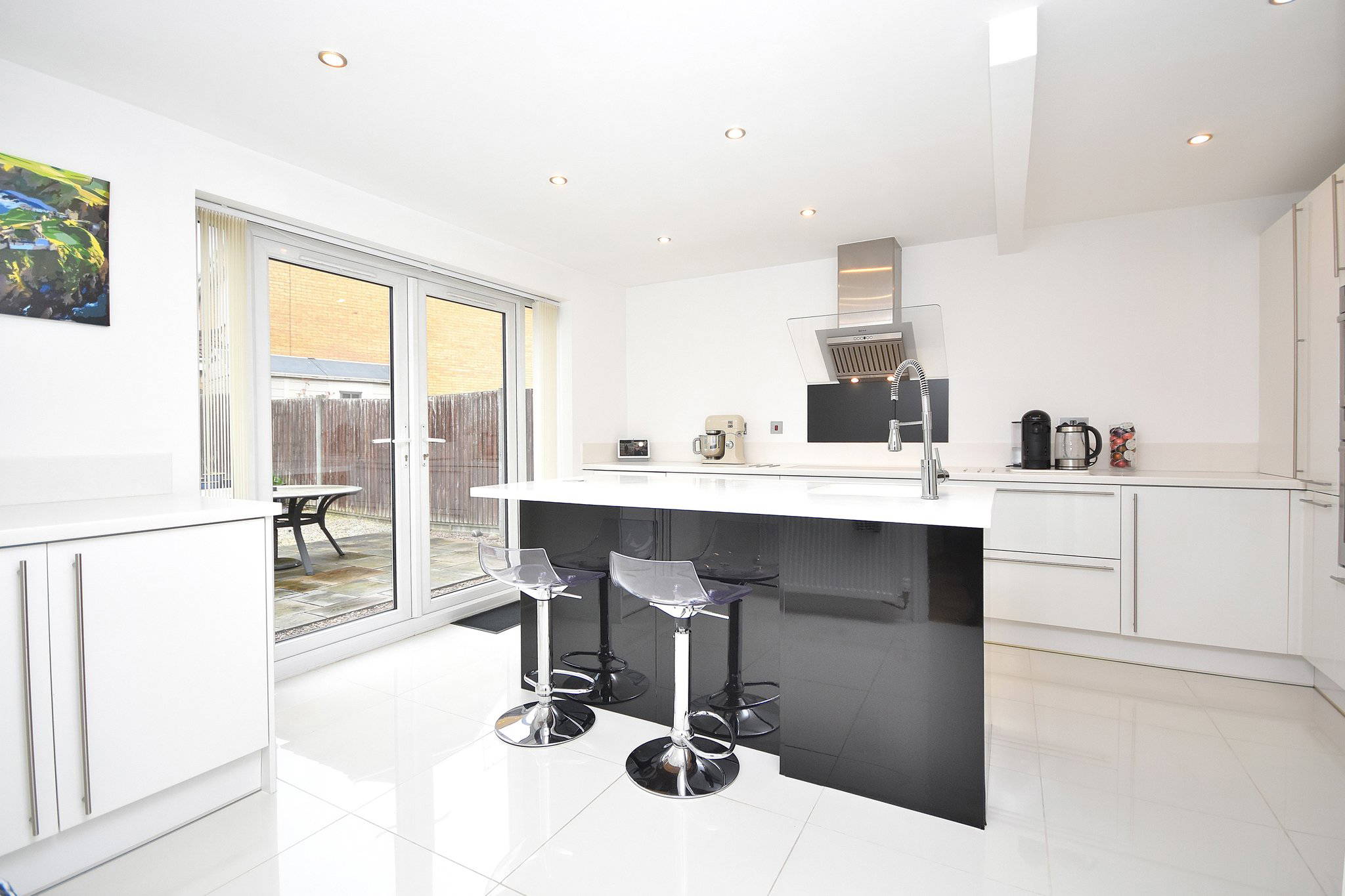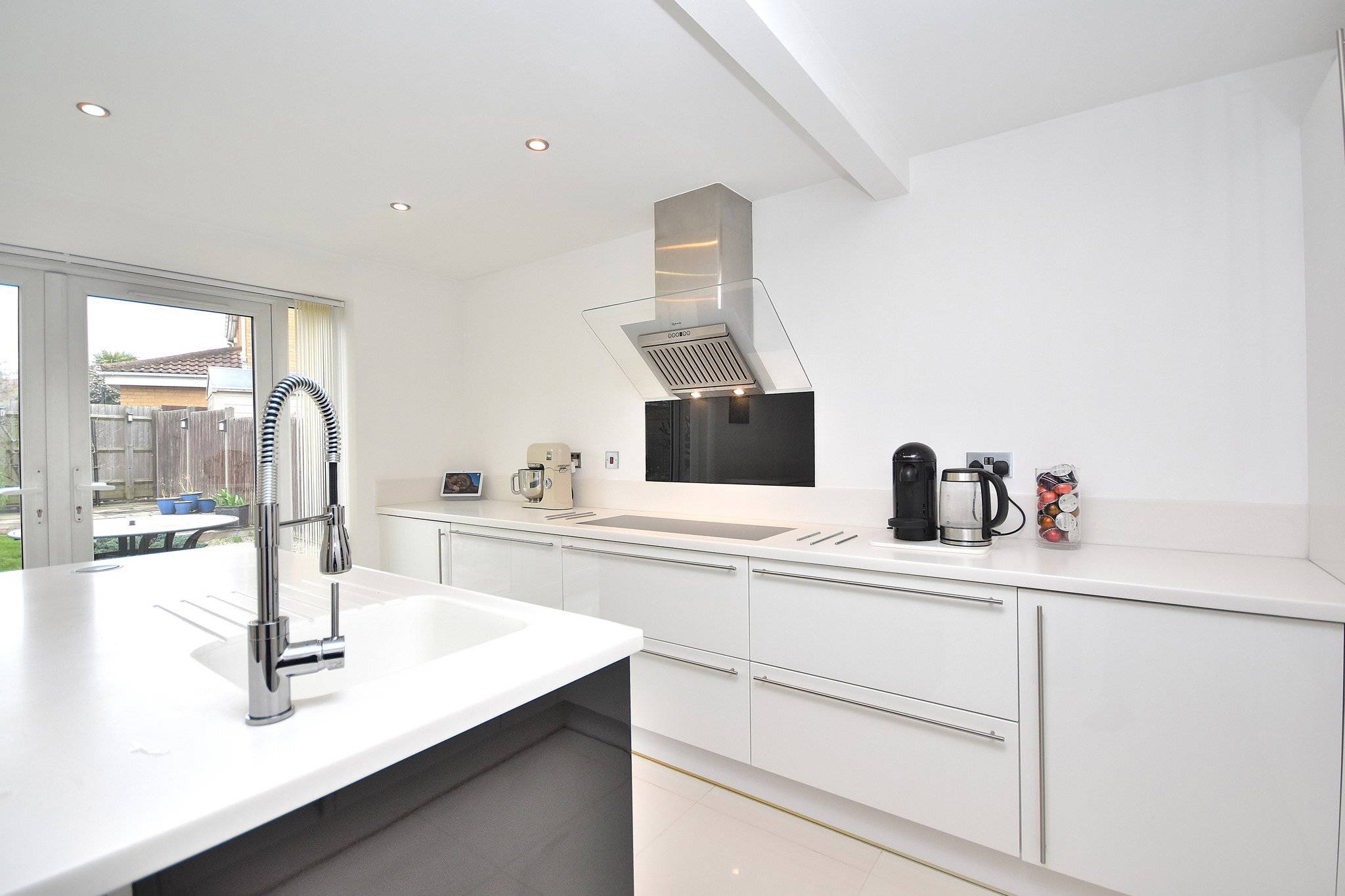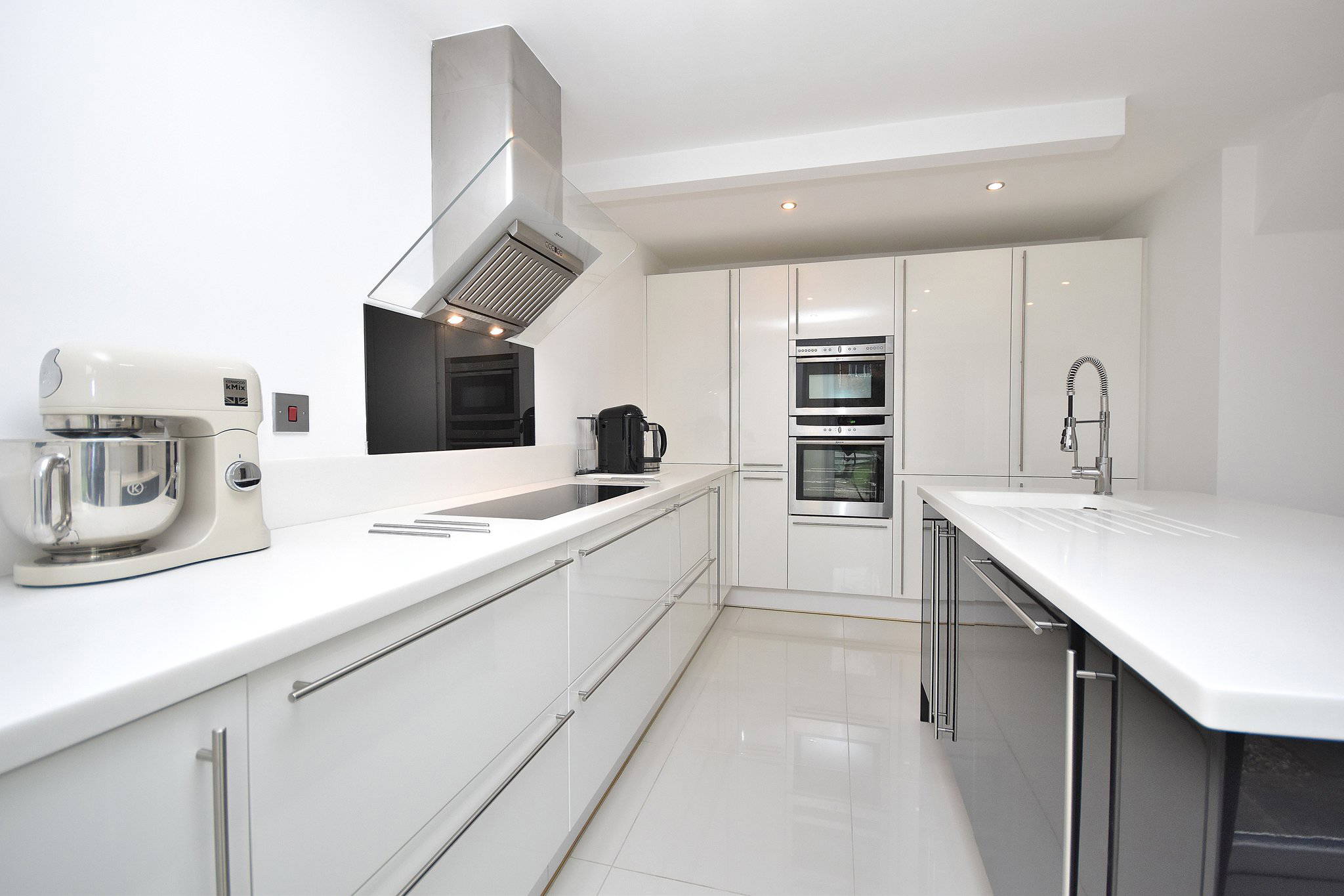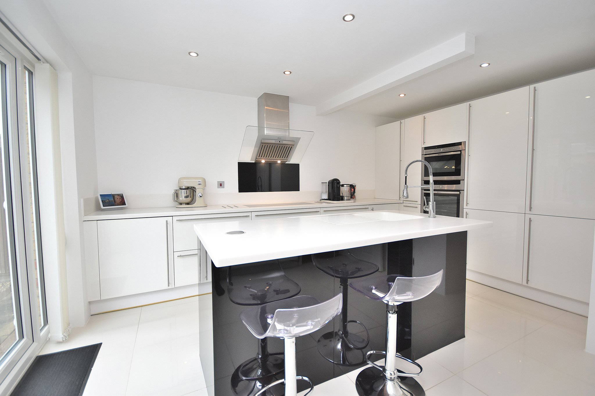 14' 0" x 13' 7" (4.27m x 4.14m) Modern fitted kitchen suite; integrated fridge/freezer, Neff dishwasher and generous cupboard space. Large island with basin in the middle of the room and dual double glazed doors to the rear aspect, leading into garden.