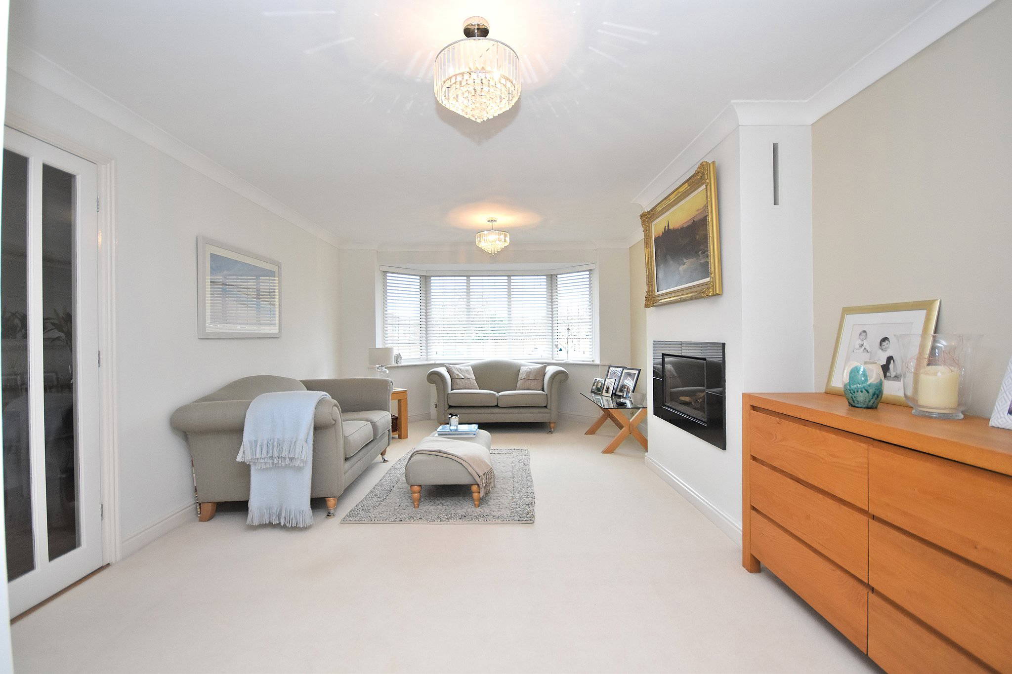 11' 1" x 19' 3" (3.38m x 5.87m) Double glass doors from entrance hall into lounge. Lounge comprises of radiator and double glazed bay window to the front aspect, remote controlled gas fireplace to the side aspect and a small opening through to the sitting room/snug.