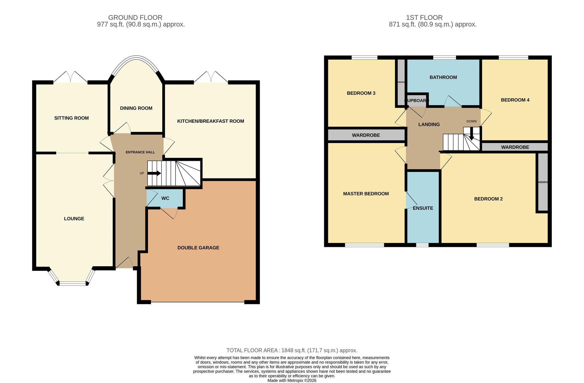 15' 3" x 11' 10" (4.65m x 3.61m) Large master bedroom with radiator and UPVC double glazed window to the front aspect. Integrated wardrobes to the rear aspect and access via door to the en-suite.