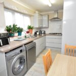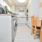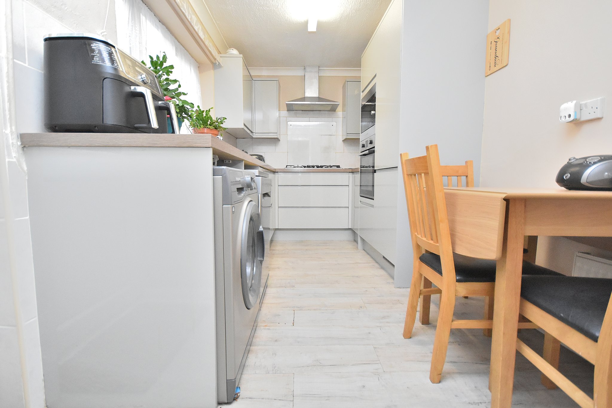 12' 2" x 7' 8" (3.71m x 2.34m) This bright and modern kitchen offers ample workspace and a range of sleek fitted units, complemented by integrated appliances and a gas hob with stainless-steel extractor. A large window allows plenty of natural light to flood in, with space for a small breakfast table creating an ideal casual dining area. The room also benefits from practical additions such as plumbing for a dishwasher and washing machine, making it a highly functional.