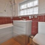 7' 3" x 5' 7" (2.21m x 1.70m) Three-piece suite comprising a bath with shower over, wash hand basin with Low level WC. Neutral tiling and décor create a bright and fresh feel. Obscure glazed window to rear aspect.