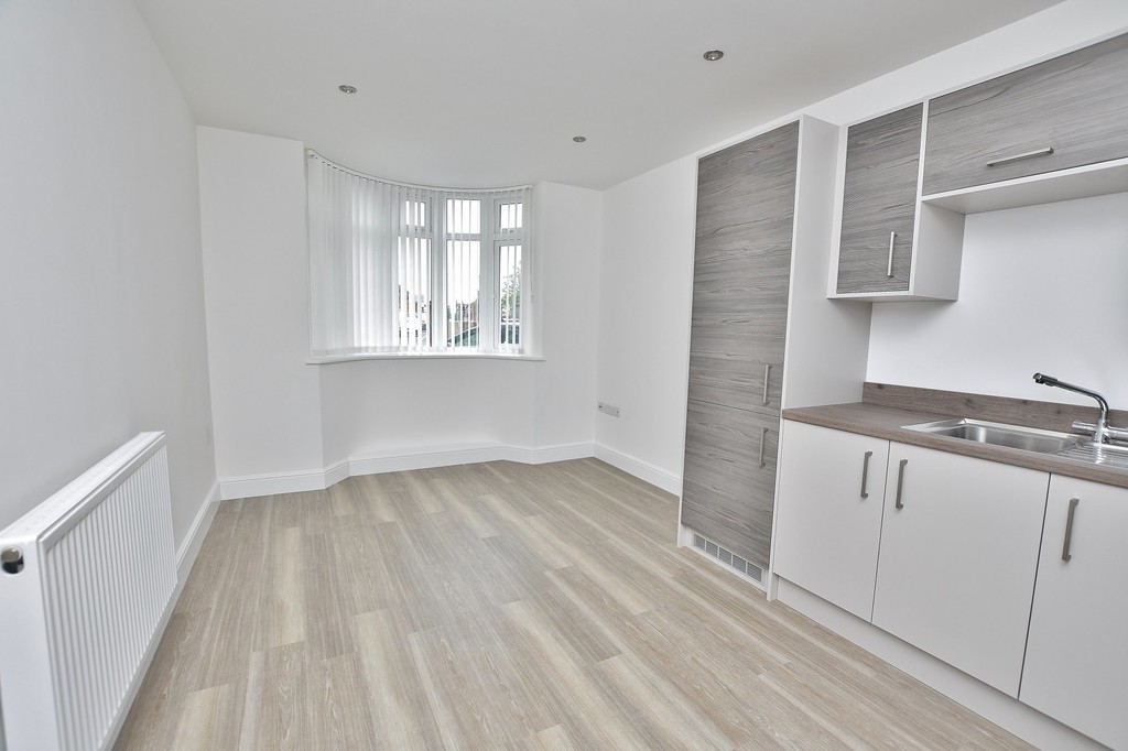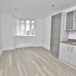 OPEN PLANLOUNGE/KITCHEN 14' 6" x 9' 7" (4.42m x 2.92m) UPVC double glazed bay window to the front aspect. Double panel radiator with thermostat controls. TV, cable and telephone connections. Wood effect flooring. Recessed ceiling spotlights. A range of eye and base level units surmounted by contrasting roll-edge worksurfaces. Inset stainless steel sink and drainer with mixer tap over. Built in single electric oven, four ring ceramic hob and extractor hood. Integrated fridge freezer and washing machine.