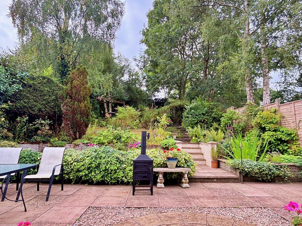 Externally, the property boasts a beautifully maintained elevated rear garden - a peaceful retreat with a well-kept lawn and patio area, ideal for alfresco dining or enjoying the sunshine. To the front, a private driveway provides off-road parking for several vehicles and leads to a single garage, offering additional storage and parking.