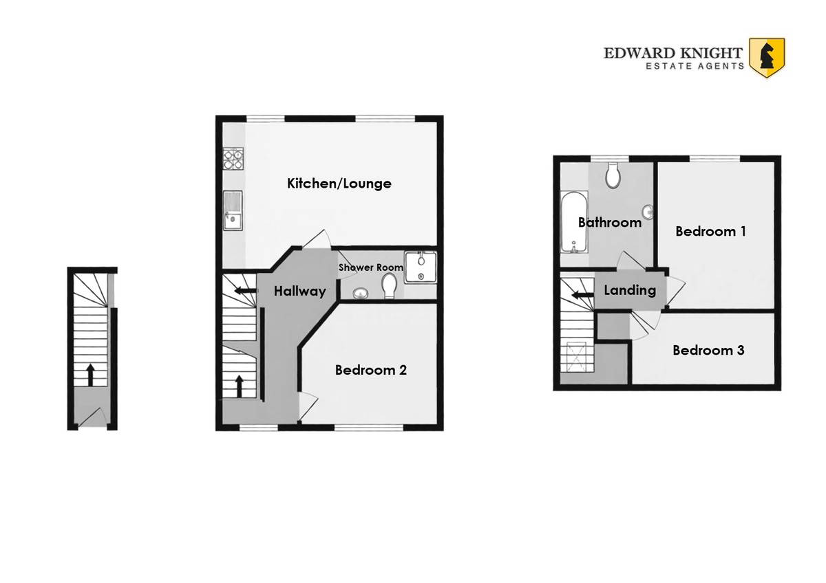 In brief, the accommodation comprises an entrance hall and an open-plan lounge/kitchen. There is also a versatile ground-floor bedroom, which could alternatively be used as a separate lounge if preferred. To the first floor are two further bedrooms and a spacious family bathroom.