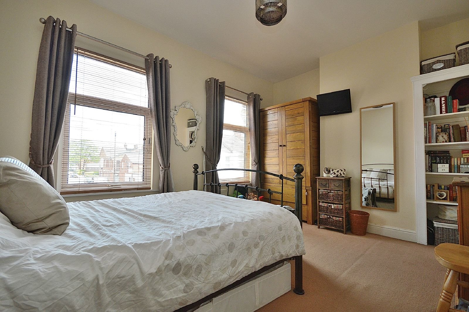 14' 2" x 10' 5" (4.32m x 3.18m) Spacious, master bedroom. Double windows with blinds to front aspect. Built in shelving. Radiator.
