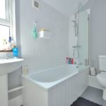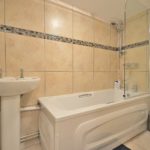 8' 4" x 4' 9" (2.54m x 1.45m) Fitted bathroom with three-piece suite with shower. Radiator.