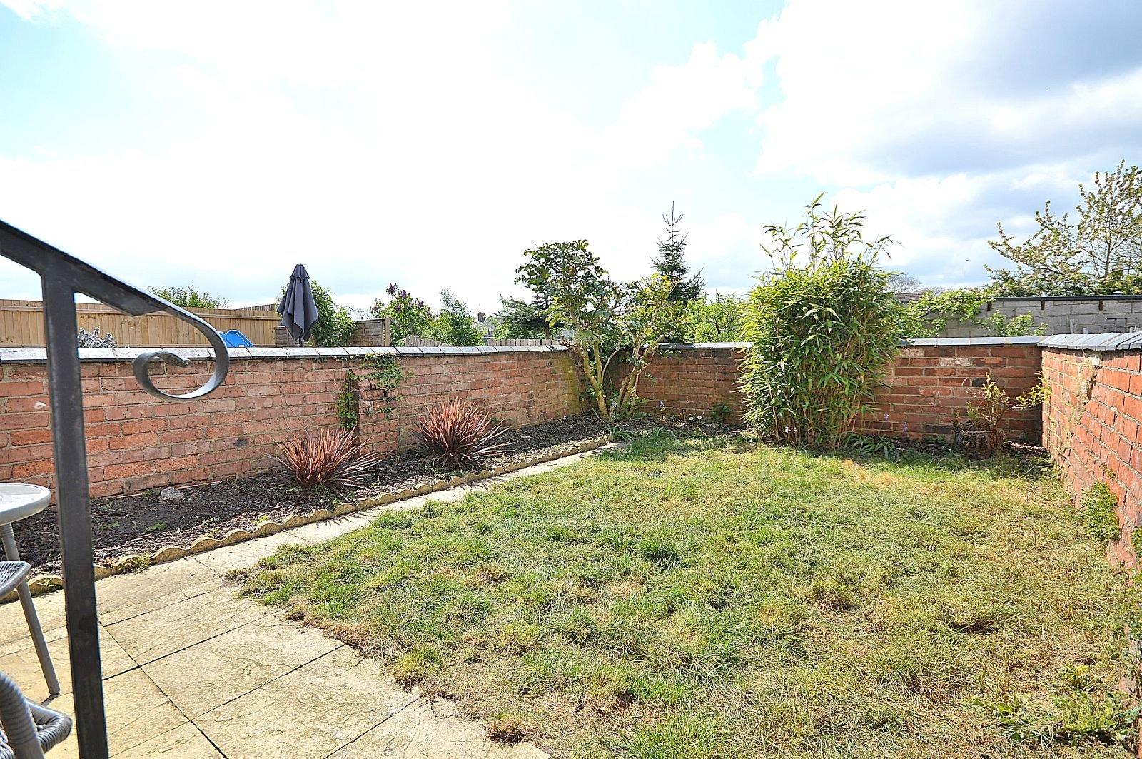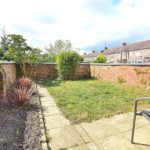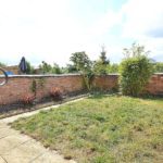 Low maintenance garden with brick wall surrounding. Patio seating area to side, leading from the dining room.