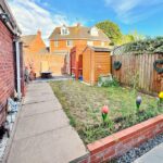 REAR GARDEN Slab patio to the rear of the conservatory with steps and slab path leading to the rear of the garden where there is a cracked slate area and timber gate leading to the parking area. The remainder is laid to lawn with planting borders to the perimeter and a small timber shed. Enclosed by brick walls and timber fencing.