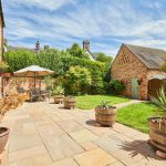 The pretty garden is enclosed by a reclaimed brick wall framed by neighbouring trees and timber panel fencing, with private paved access to the detached garage and a garden gate leading to the gravelled courtyard and designated off-road parking. A stone-flagged side return enclosed by timber gates leads to the front of the property facing this attractive village's historic main street.