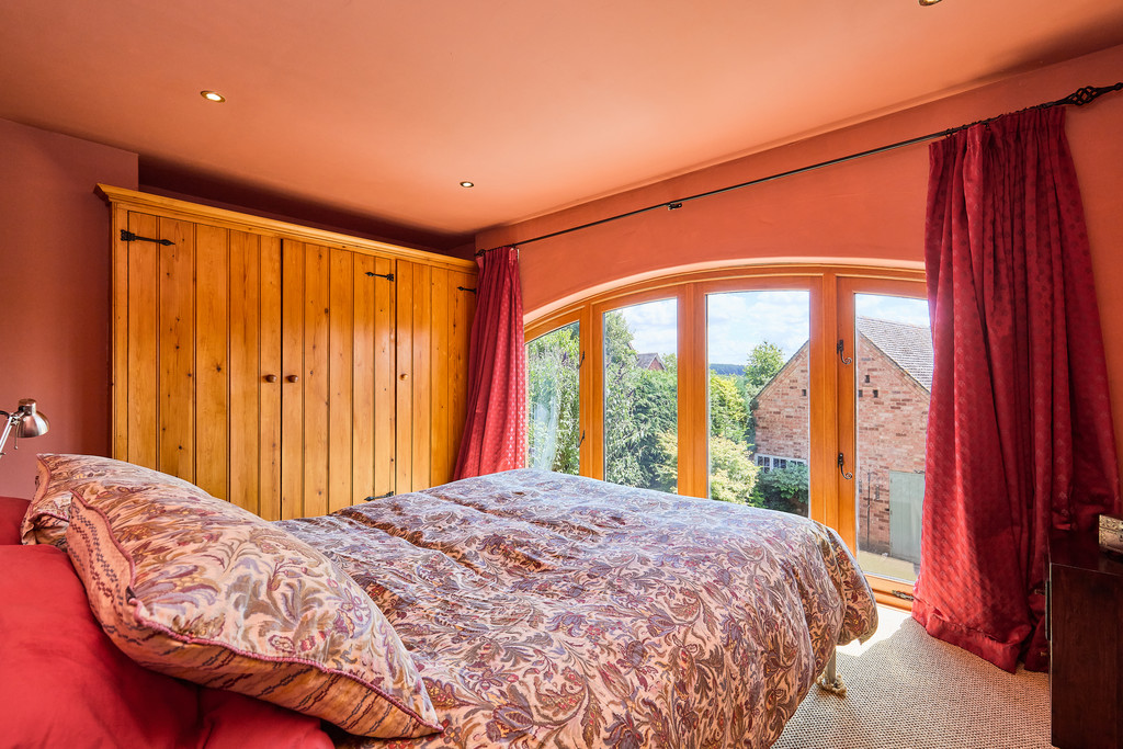 FIRST FLOOR On the first floor there are four bedrooms, including the master bedroom with en-suite shower room, traditionally styled built-in triple wardrobe and large picture windows overlooking an enclosed south-facing garden and outstanding countryside views; there is also a family bathroom and three other bedrooms, one of which is currently used as a study suitable for working from home.
