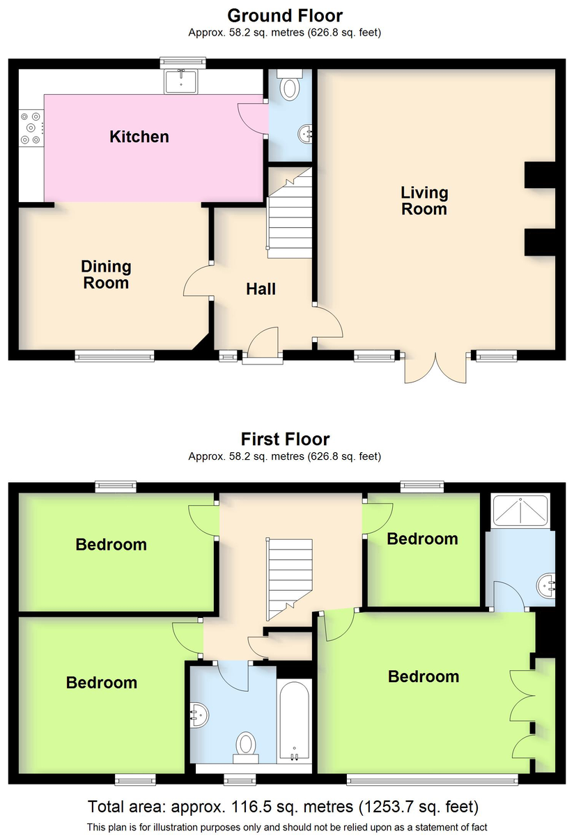 The first-floor landing has reclaimed pine floorboards, loft access, and traditional, farmhouse-style latch, ledge and brace wooden doors to all bedrooms, all of which have, radiators, recessed ceiling spotlights / dimmable downlights and double-glazed windows.