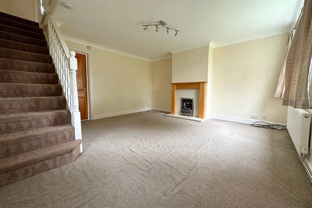 Lounge 14' 9" x 14' 4" (4.50m x 4.37m) UPVC double glazed window to front and side aspect, feature gas fireplace with wood mantle surround, stairs leading to first floor, radiator, laminate flooring, TV and telephone points.