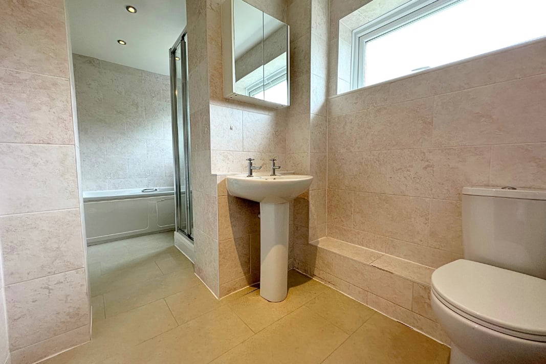 Bathroom Two obscured UPVC double glazed windows to rear aspect. A four piece suite comprising; low level WC, vanity sink unit, walk in shower cubicle and Jacuzzi bath with shower over, tiling to splash backs, radiator.