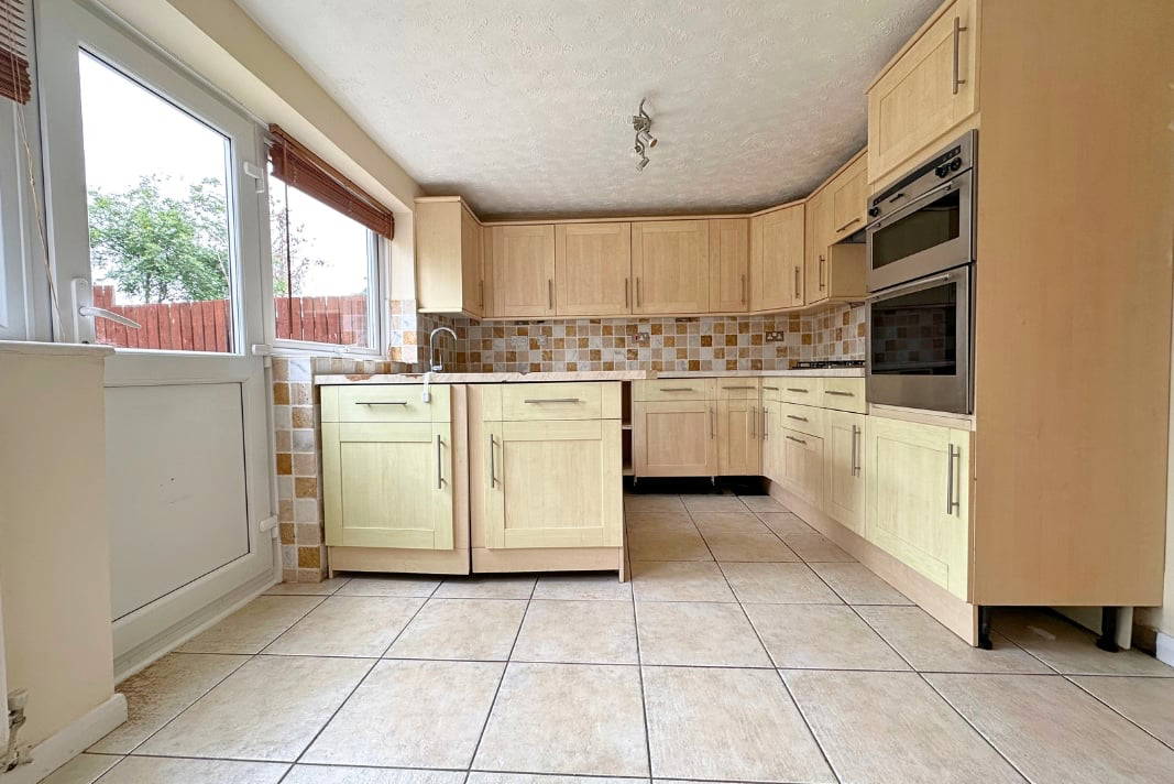 Kitchen/Diner 14' 8" x 10' (4.47m x 3.05m) Two UPVC double glazed windows to rear aspect, UPVC double glazed door to garden. A refitted kitchen with a range of wall and base mounted units with roll top work surfaces over, pelmet lighting, tiling to splash backs, gas hob with double oven and stainless steel extractor over, plumbing for washing machine, fitted integral dishwasher, door to under stairs storage cupboard, radiator, tiled flooring, space for dining table.