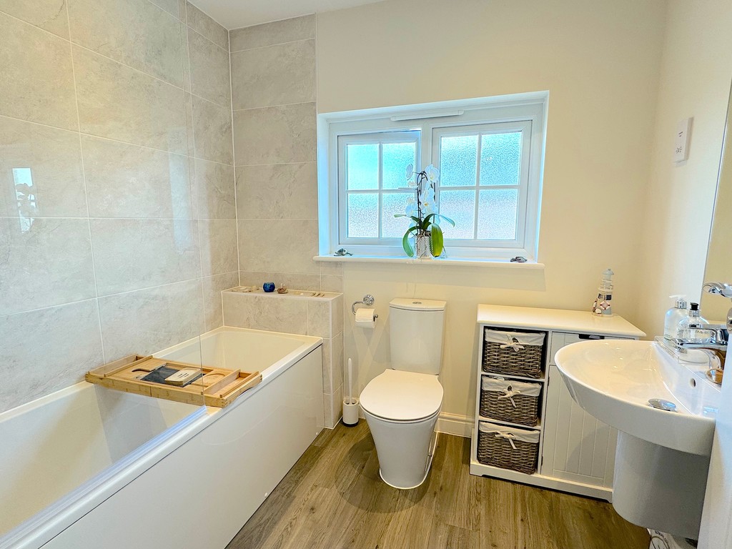 The spacious accommodation is set over three floors and briefly comprises: entrance hall, ground floor W.C, kitchen/dining room with integrated appliances and a bright living room which has patio doors to the rear garden and patio. To the first floor, there are three bedrooms, all with fitted wardrobes, the second bedroom benefiting from an ensuite shower room, there is also a further family bathroom. On the second floor there is a spacious master bedroom, benefiting from an ensuite bathroom with shower. The property further benefits from a southerly facing rear garden, two off-road parking spaces, gas central heating, uPVC double glazing and fitted solar panels to the rear roof.