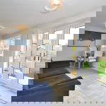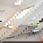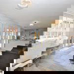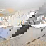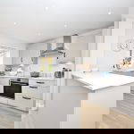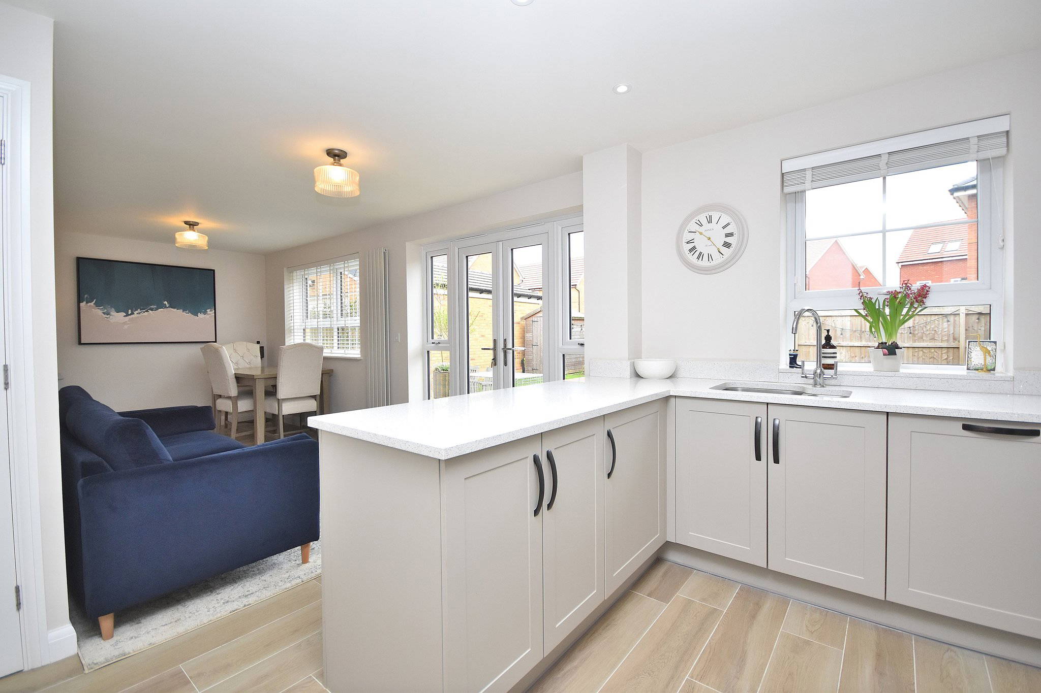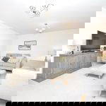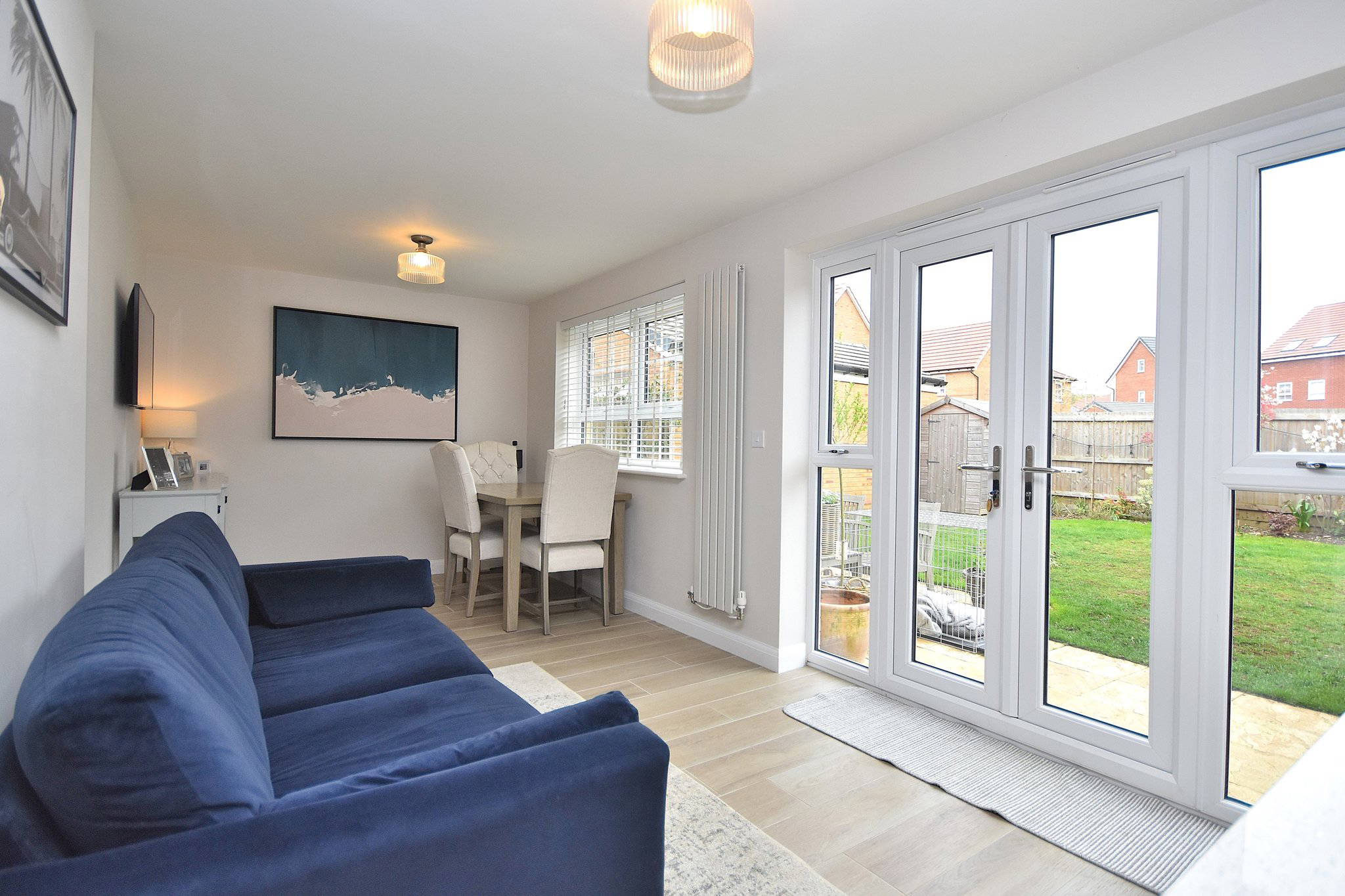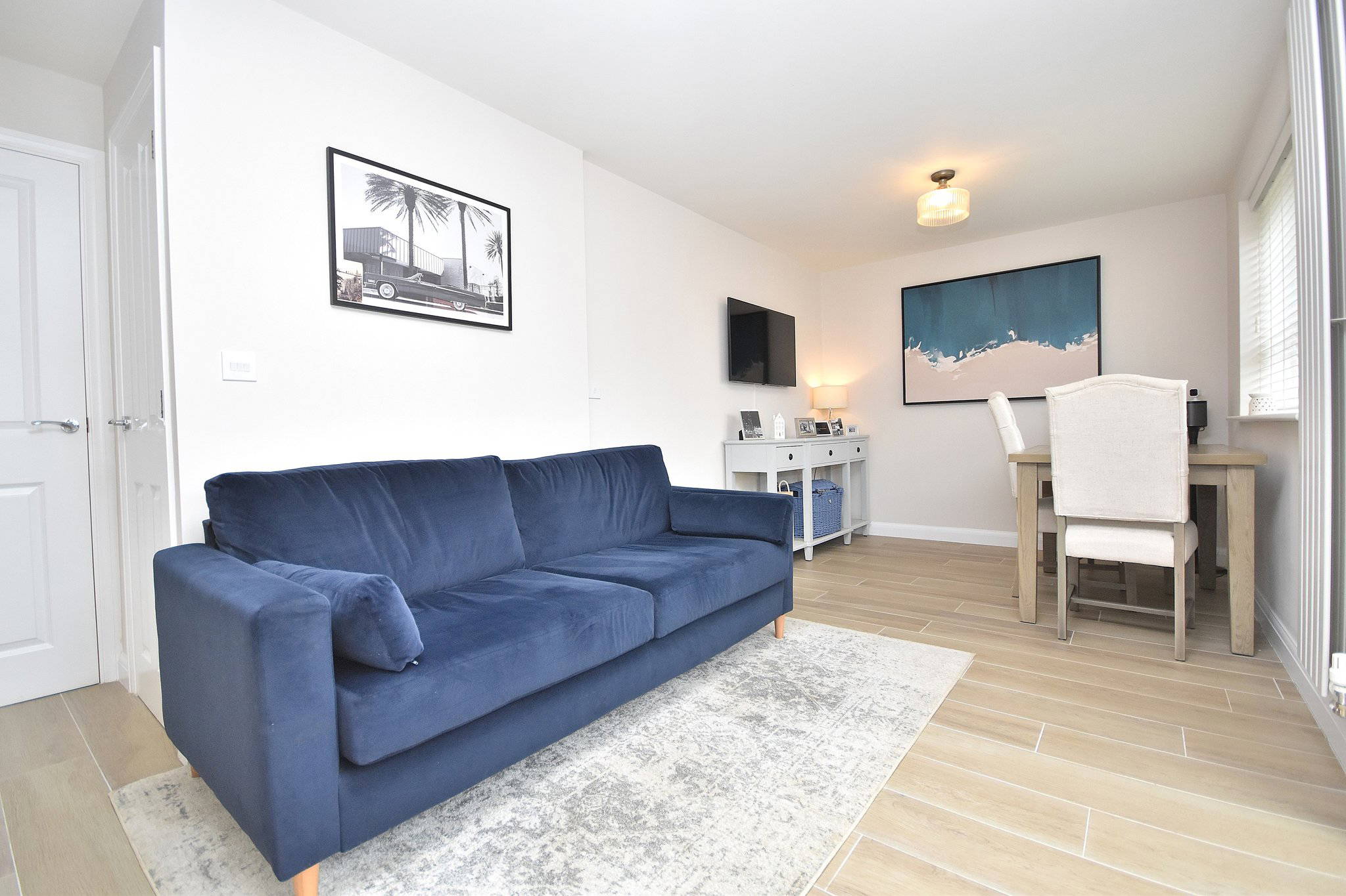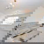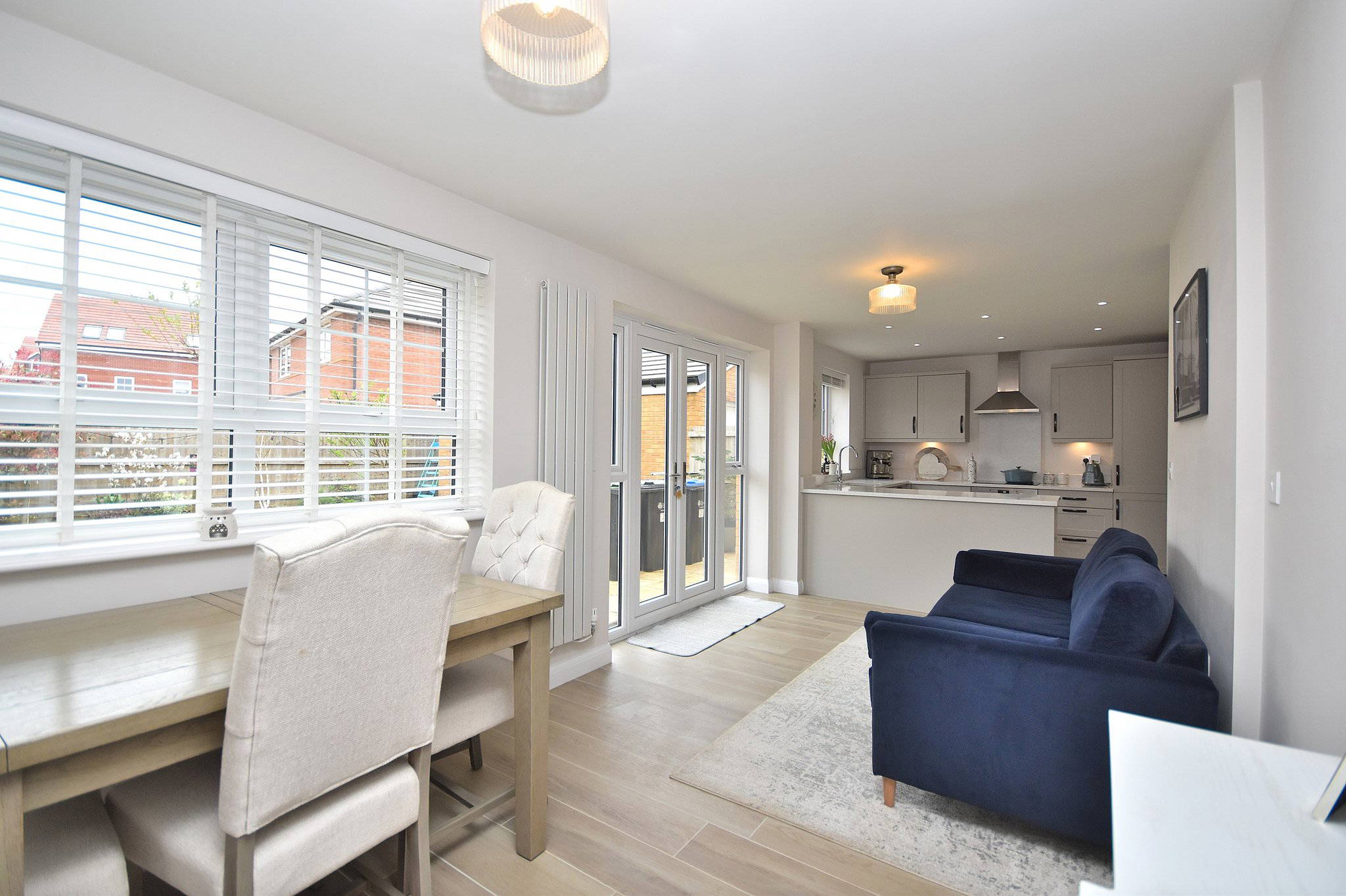 A superb open plan space forming the heart of the home, fitted with a range of contemporary wall and base units with Quartz work surfaces and integrated appliances. There is ample space for both dining and informal seating areas, with French doors opening directly onto the rear garden, creating an ideal space for entertaining and modern family living.