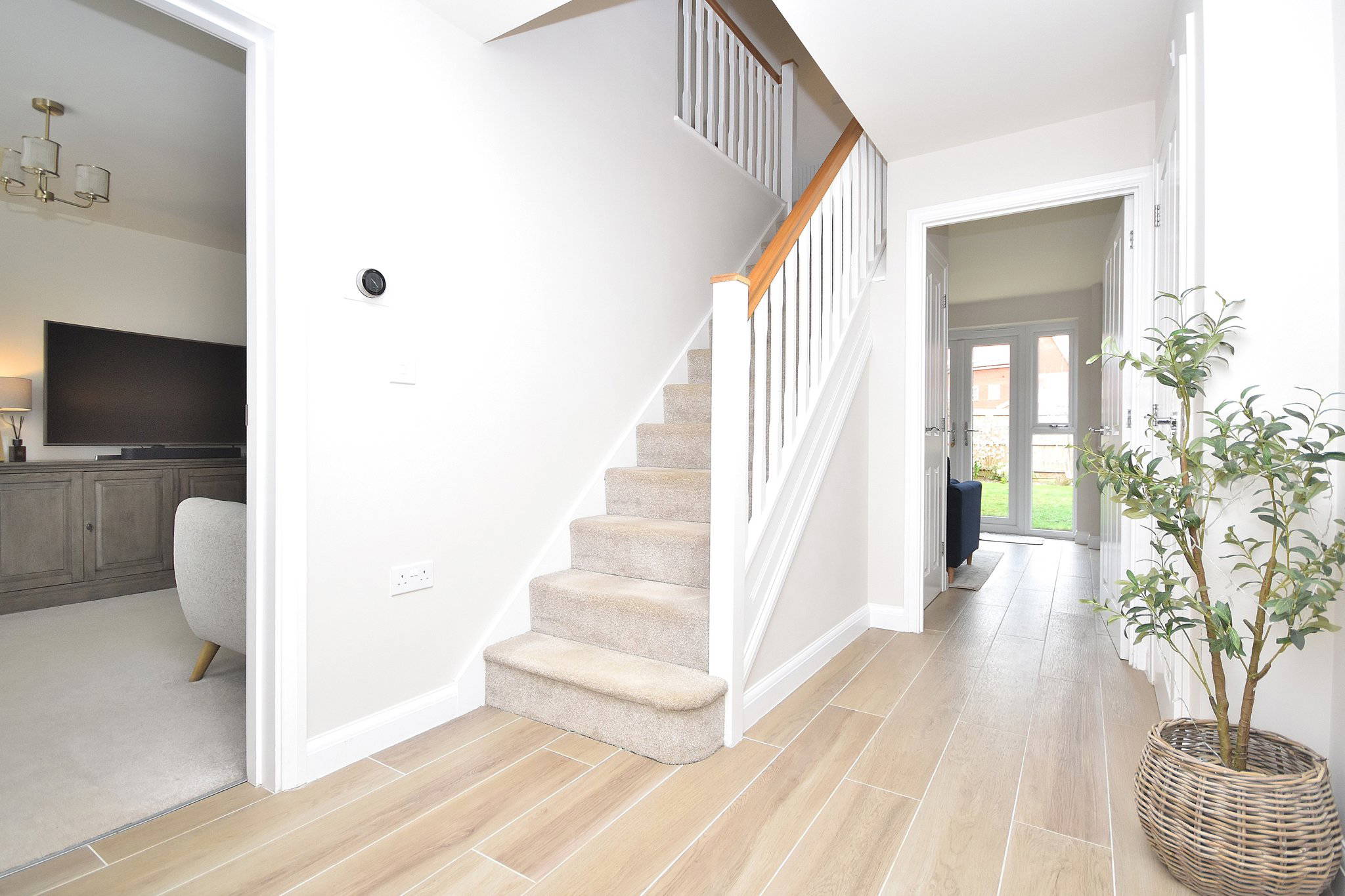 A welcoming entrance hall providing access to all principal ground floor accommodation, with stairs rising to the first floor and useful storage.
