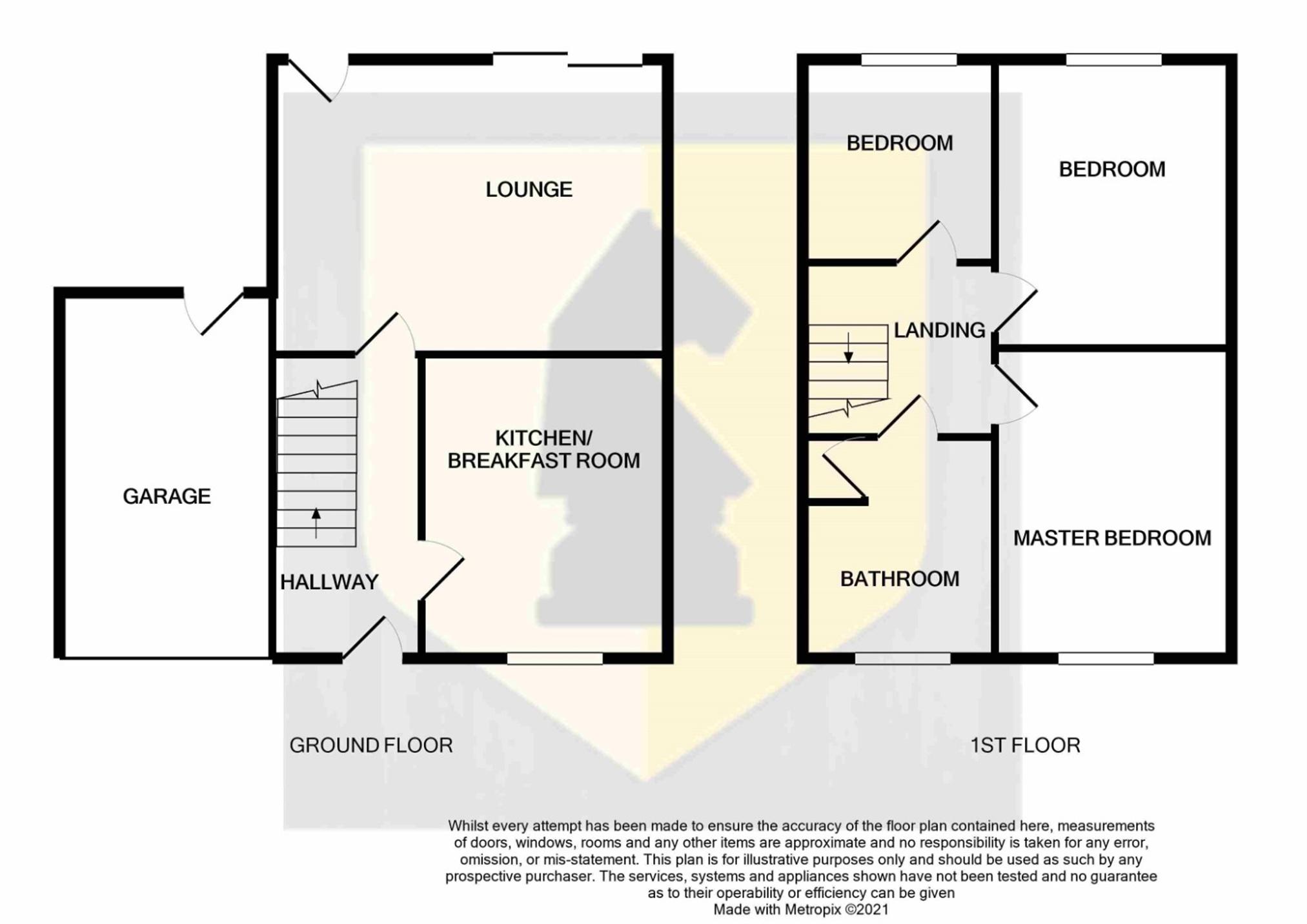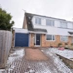 Small lawn, well planted, block paved driveway providing off road parking leading to garage.