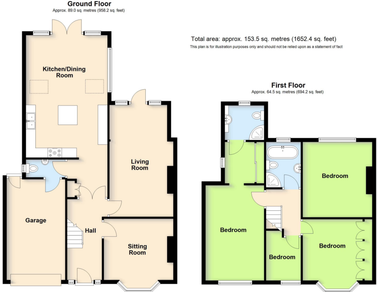 Complementing this superb living area are two further generous reception rooms, both brimming with character and charm. Each offers its own distinct feel, enhanced by an attractive bay window and feature fireplace, creating warm and inviting spaces for relaxation and entertaining. The ground floor also benefits from a guest cloakroom/WC and internal access to the garage, which includes a practical utility area.