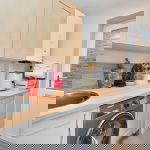 Comprising of; Wall mounted boiler. Eye level and base level kitchen units. Sink basin with mixer tap over. Space and plumbing for washing machine. UPVC double glazed door leading to side aspect.