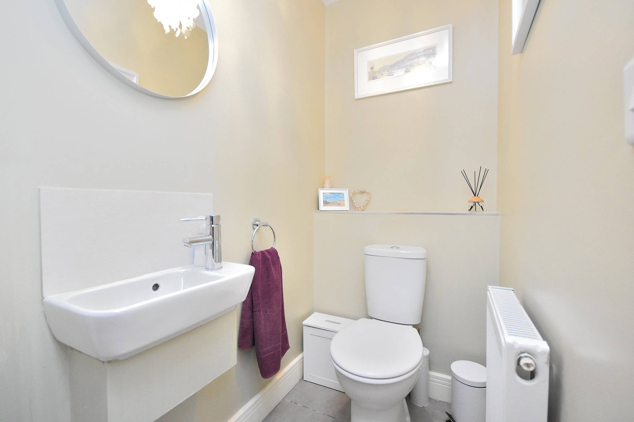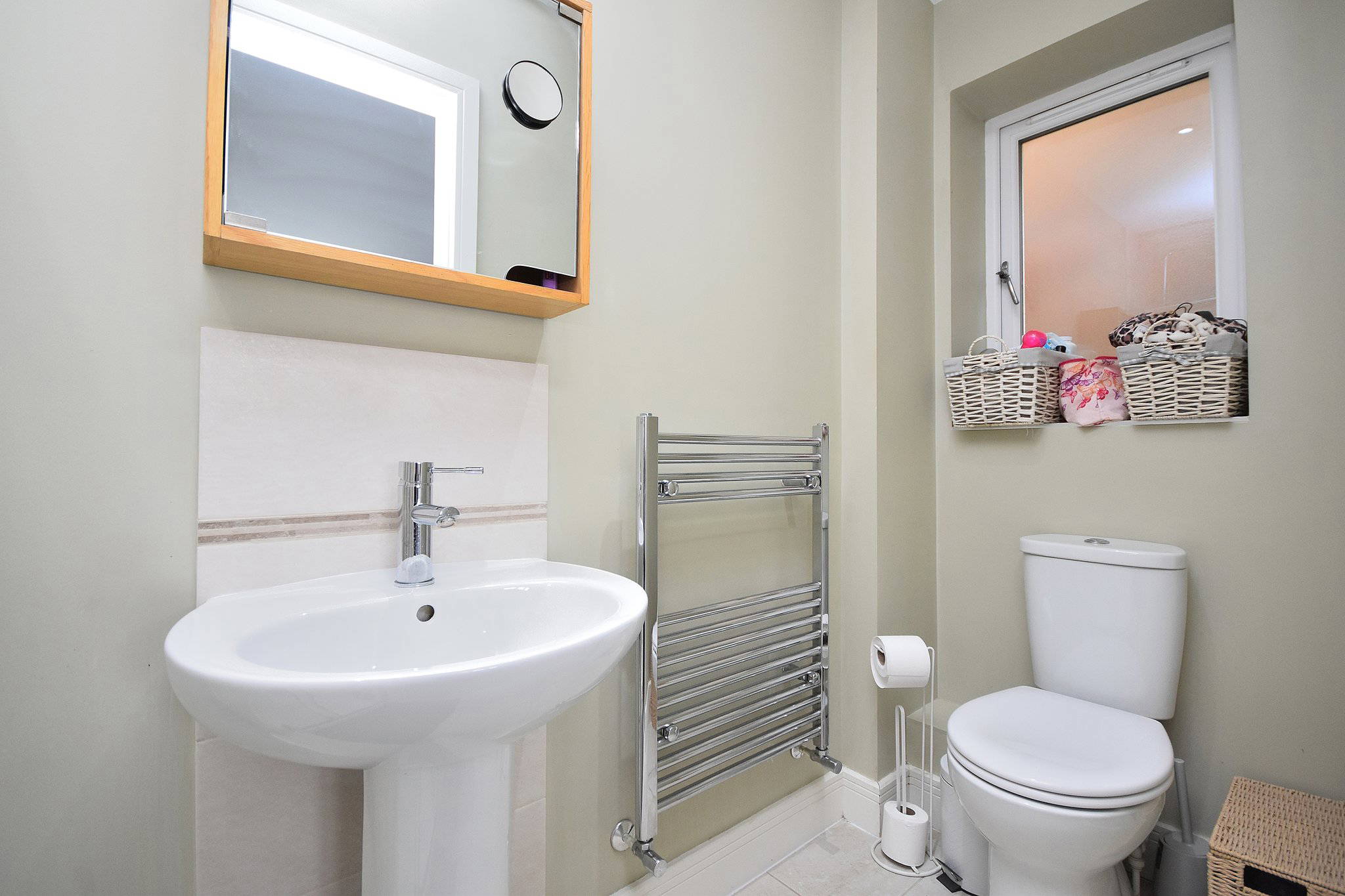 Comprising of; W/C. Hand wash basin with mixer top over and pedestal. Vanity unit with mirror wall mounted. Heated towel rail. Shower cubicle and shower over. UPVC double glazed window to the side aspect.