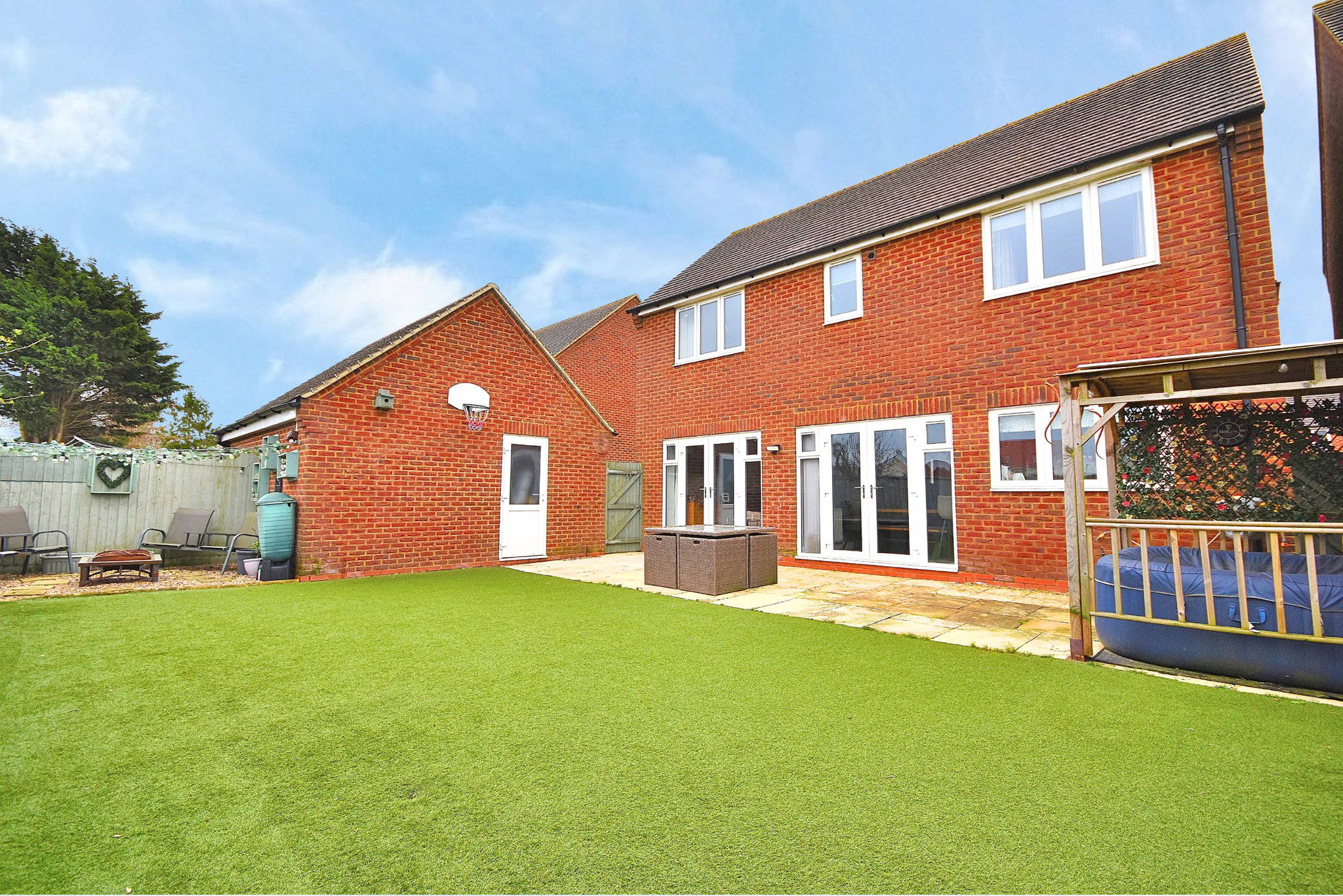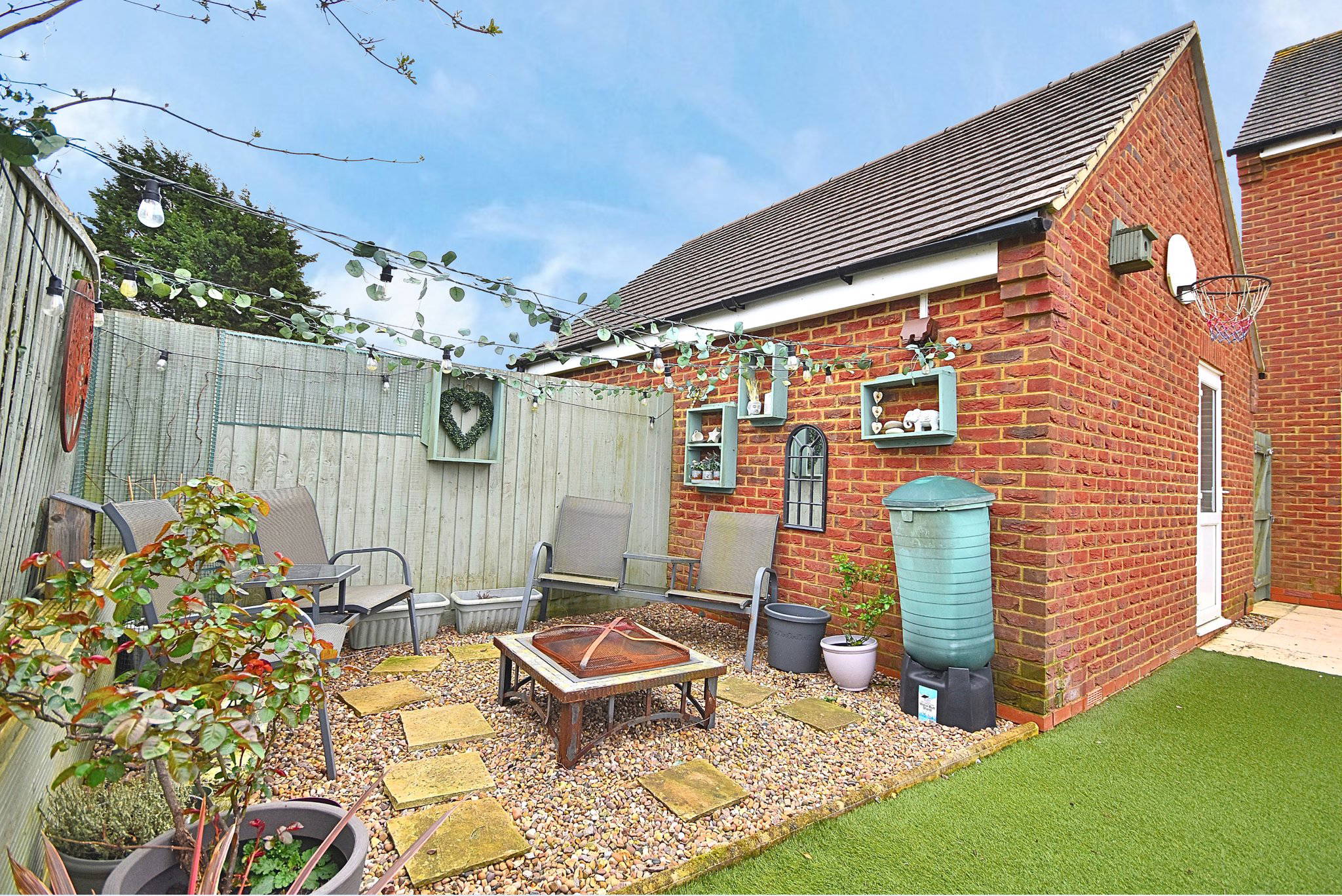 Comprising of; Patio & Faux Grass landscaped garden. Further patio area behind garage. Single garage to the side aspect of the property with power and lighting.