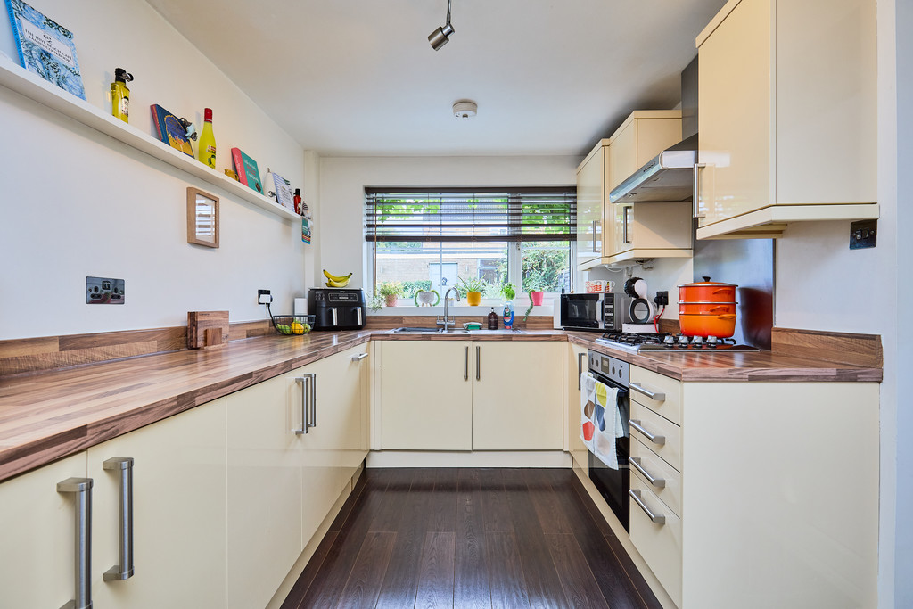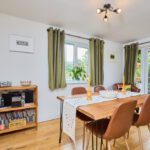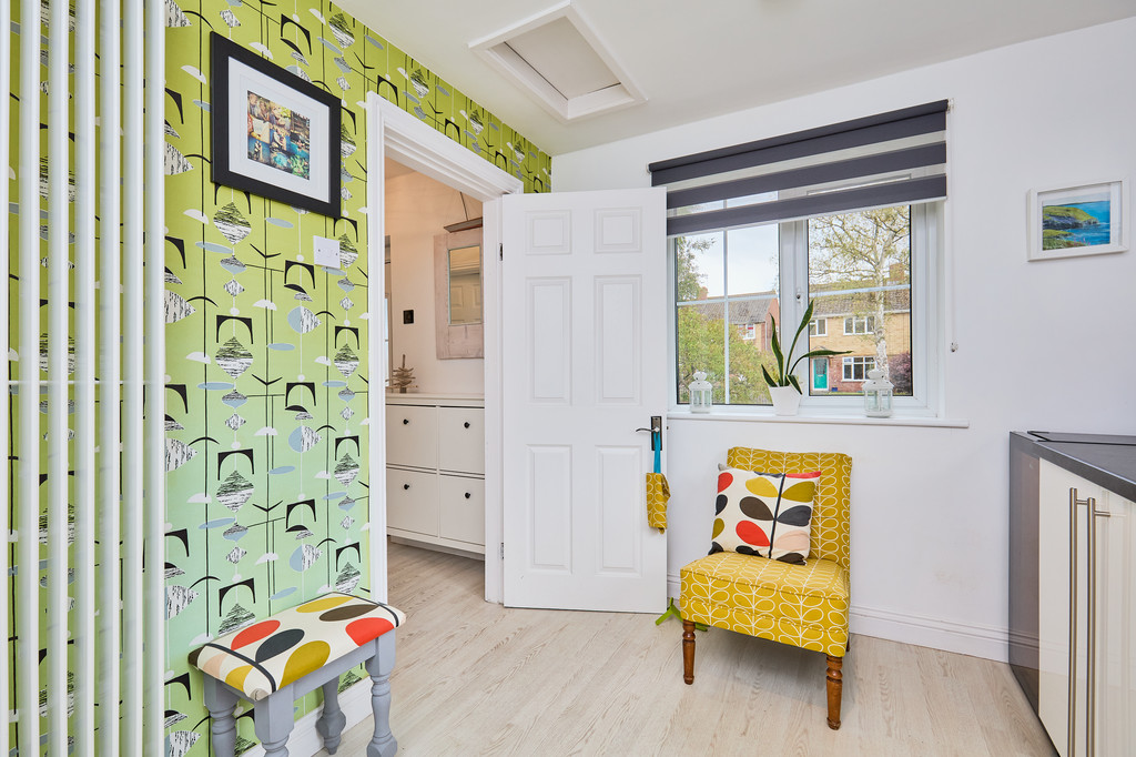 The heart of the home is the generous open-plan living room, which has been carefully designed to create a comfortable yet versatile space. A sleek modern log burner forms an attractive focal point, while the elegant bay window frames views across the landscaped garden and allows natural light to flood the room. A door lead through to the dining room, a wonderfully bright space with dual aspect views, perfect for formal entertaining or family meals.
