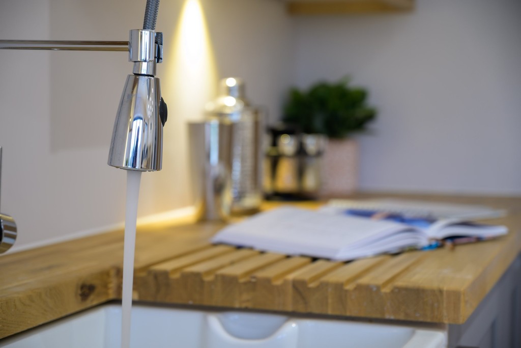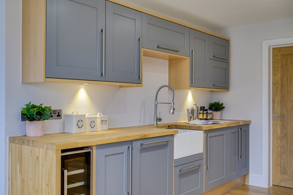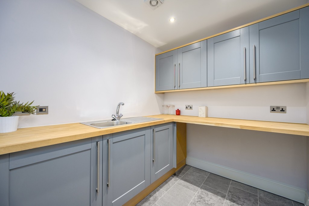 UTILITY ROOM 7' 7" x 6' 8" (2.31m x 2.03m) Enter via oak door. Tiled floor. Range of base and eye level units and oak worksurfaces. Built in sink with drainage board and mixer tap. Door into garage, LED recessed spotlights. Extractor fan. Single panel radiator with thermostat control.