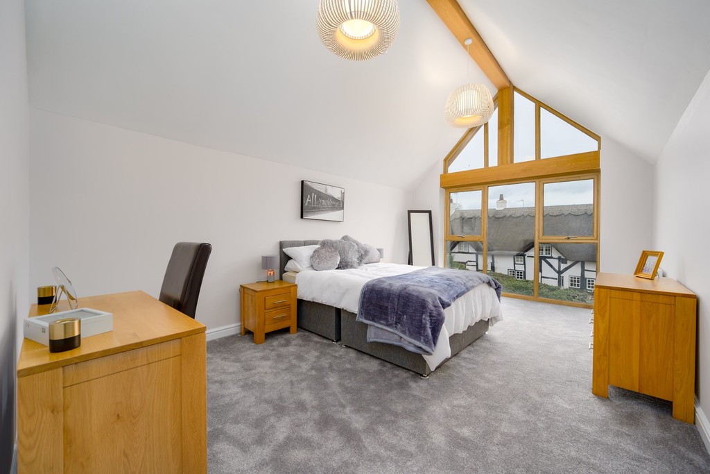 BEDROOM TWO 13' 9" x 10' 11" (4.19m x 3.33m) Enter via oak door. TV point. Ethernet point. Single panel radiator with thermostat control. Irish oak uPVC double glazed window to front elevation. Vaulted ceiling.