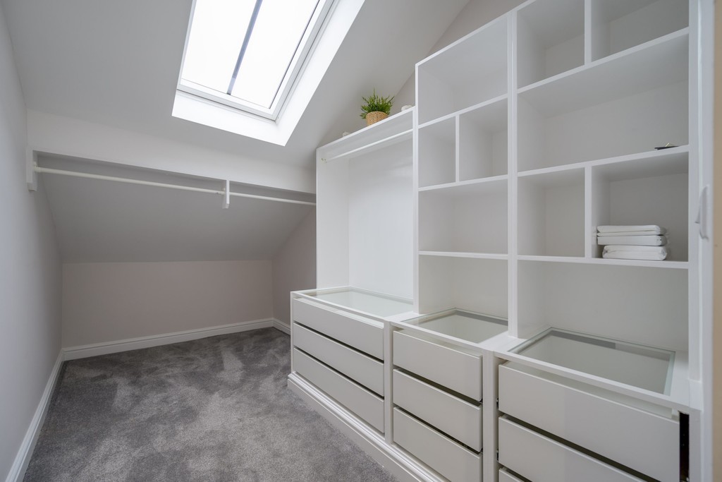 WALK IN WARDROBE Enter via oak door. Built in wardrobes. Skylight. LED recessed spotlights.