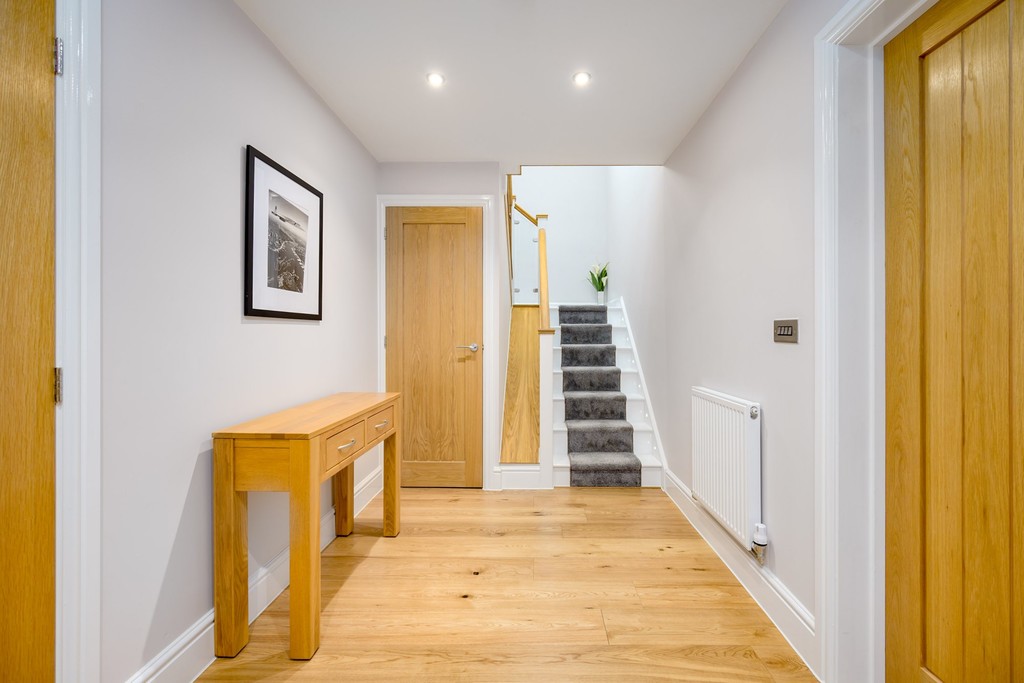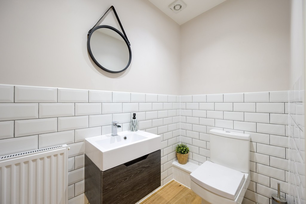 CLOAKROOM Enter via oak door. Continuation of oak floor. Low flush wc. Wash hand basin with mixer taps. Single panel radiator with thermostat control. LED Recessed spotlights. Extractor fan. Tiled half way up the walls.