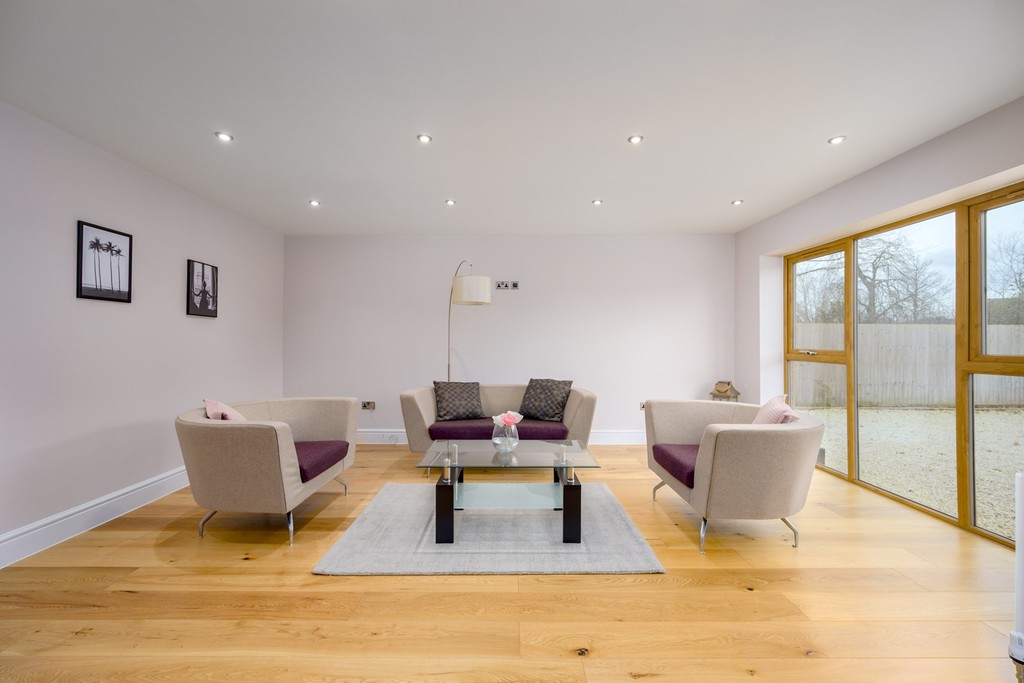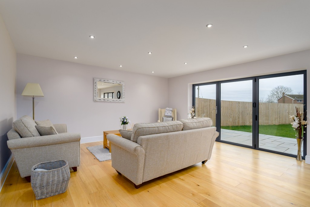 SUN ROOM 10' 10" x 15' 3" (3.3m x 4.65m) Continuation of oak floor. Aluminium Bi-fold door to rear garden patio. TV point. Ethernet point. LED recessed spotlights. Single panel radiator with thermostat control. Window lantern.