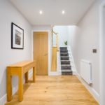 LOBBY AREA 10' 6" x 6' 7" (3.2m x 2.01m) Enter via two oak with glass doors. Continuation of oak flooring. Single panel radiator with thermostat control. LED Recessed spotlight. Smoke alarm. Stairs to first floor. Oak door to understairs cupboard. Double oak doors to kitchen/family/dining area. Door into: