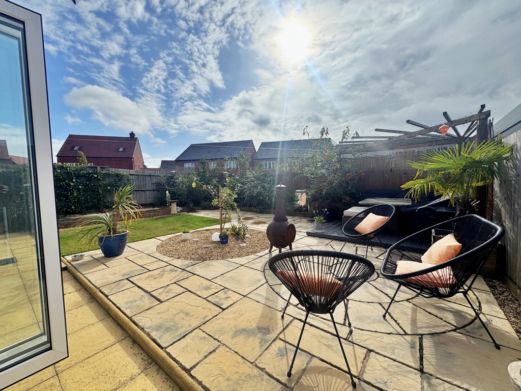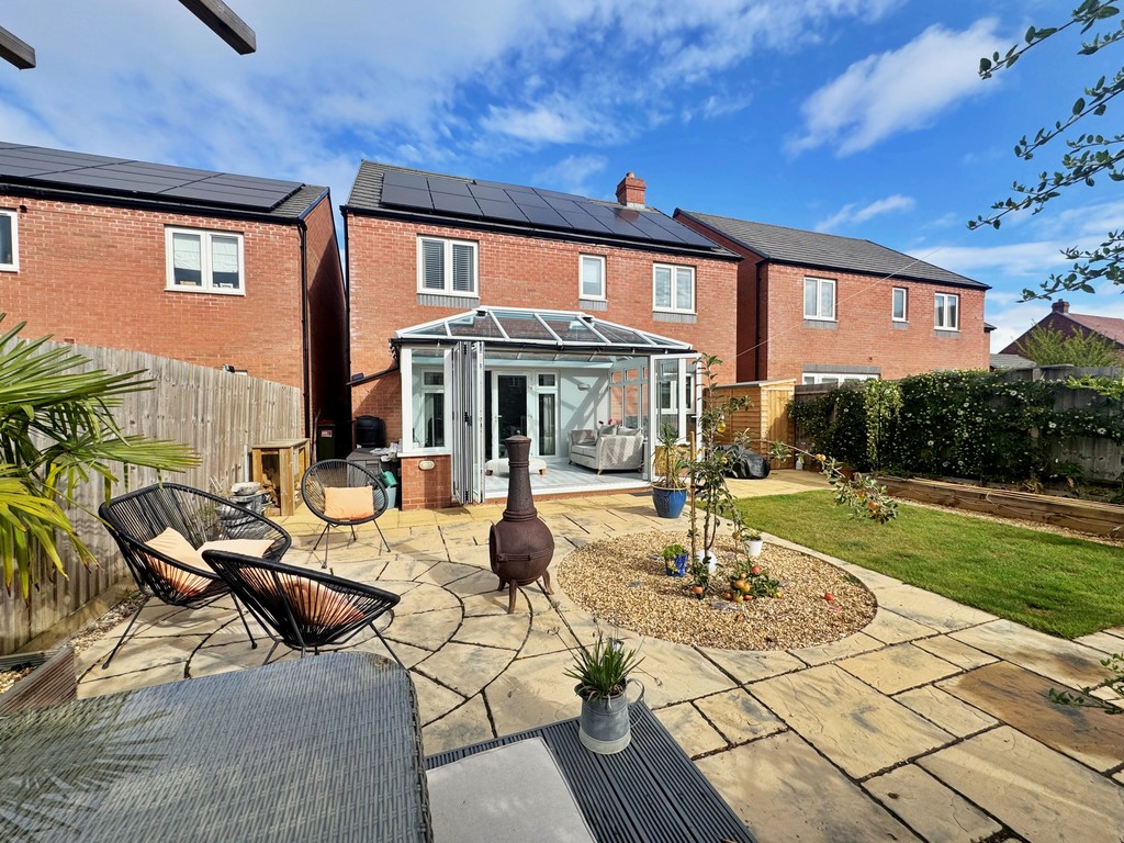 Externally, the property is equally impressive. To the front, a driveway provides off-road parking for two vehicles in addition to the integral single garage. To the rear, the immaculate enclosed landscaped garden is south-facing, ensuring abundant natural light throughout the day, and offers an ideal space for outdoor dining and recreation. The home is further enhanced by the installation of solar panels on the rear roof, promoting energy efficiency and cost savings.