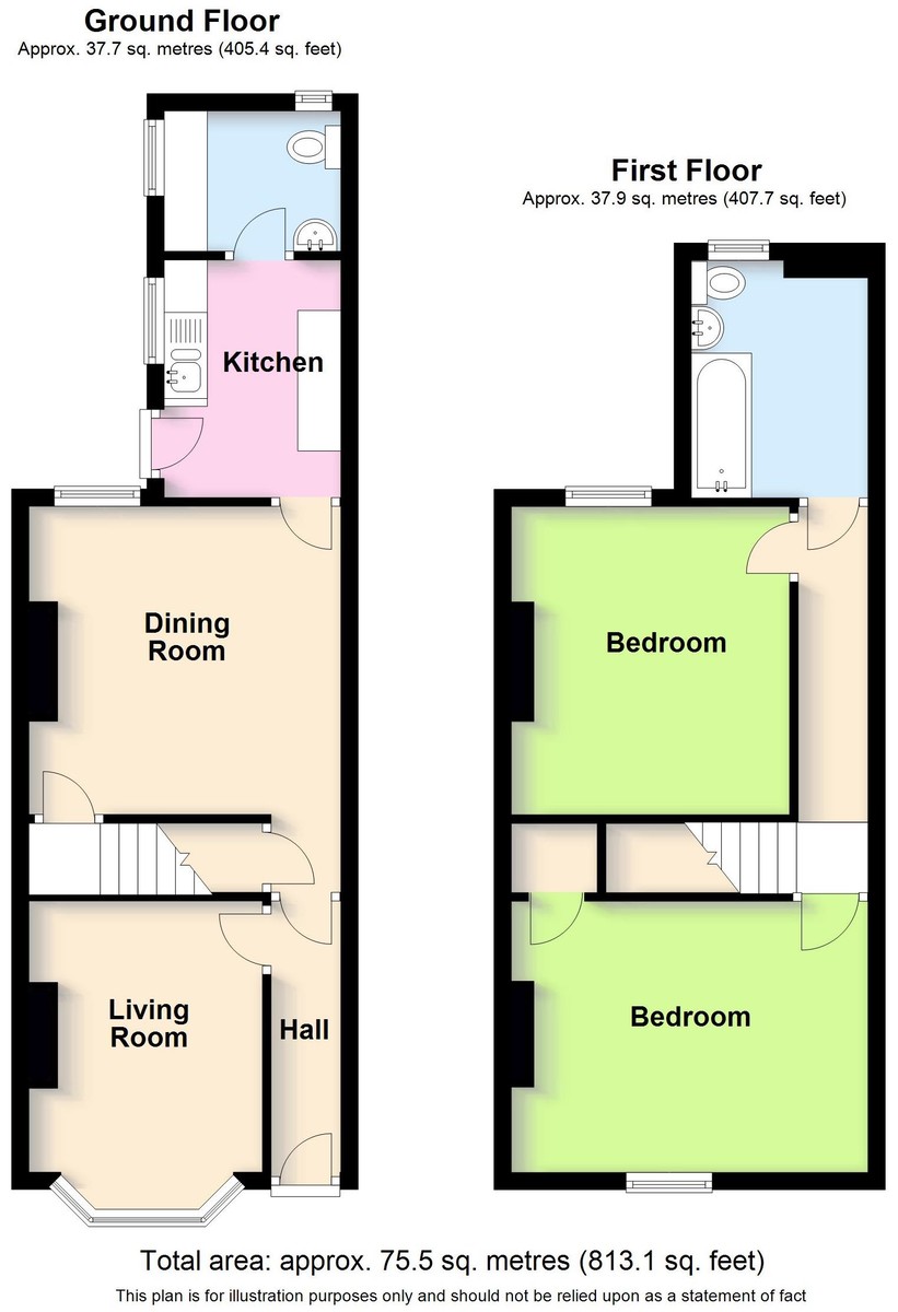 To the first floor, the property provides two generous double bedrooms, along with a refitted family bathroom finished to a modern standard.