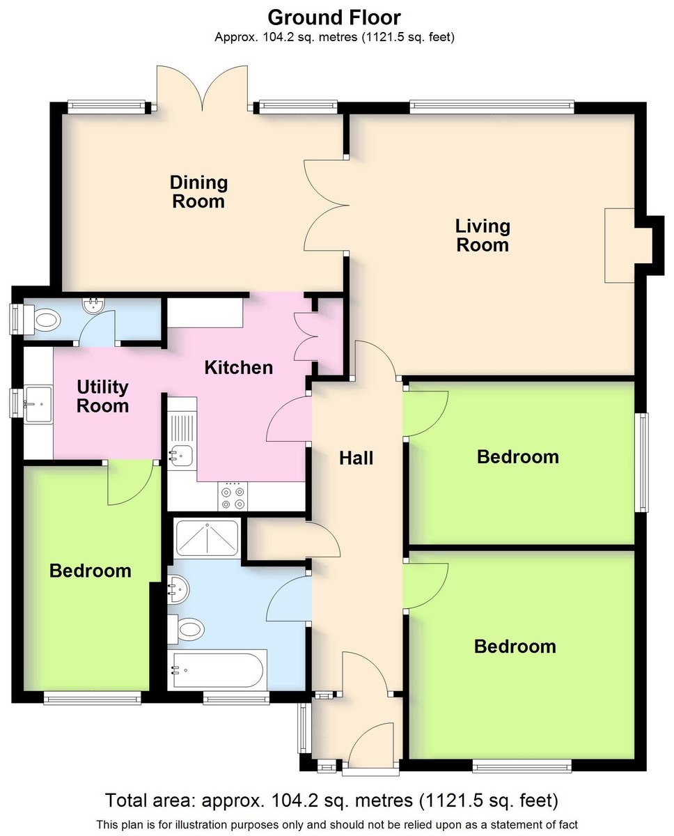 The bungalow provides spacious and beautifully maintained accommodation, beginning with a bright and inviting entrance hall. The charming living room features a log burner and enjoys delightful views across the south-facing rear garden. The well-appointed kitchen includes integrated appliances and an adjoining utility room for added convenience. A separate dining room, complete with French doors leading out to the rear patio, offers an ideal setting for entertaining. Completing the internal accommodation are a guest WC, three generously proportioned bedrooms, and a stylish family bathroom with a separate shower.