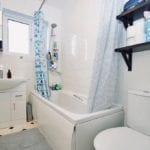 BATHROOM 5' 2" x 7' 9" (1.57m x 2.36m) Low flush WC. Wash hand basin with vanity unit below, a mixer tap and tiled splash backs. Panelled bath with a mixer tap and telephone shower attachment over. Newly fitted extractor fan. Wall mounted heater. An obscure uPVC double glazed window to the rear aspect.