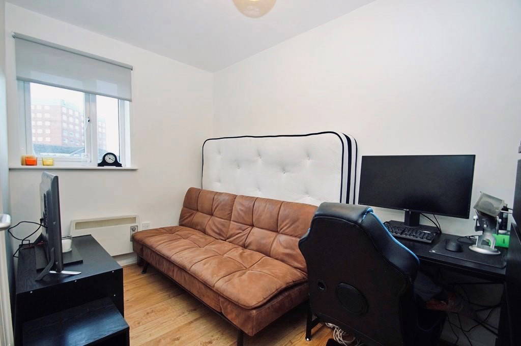 BEDROOM THREE 11' 7" x 7' (3.53m x 2.13m) uPVC double glazed window to the front aspect. Wall mounted electric heater. Built-in wardrobe with hanging space and shelving.