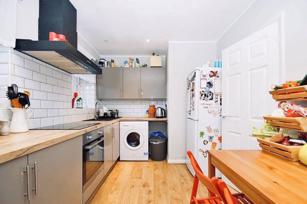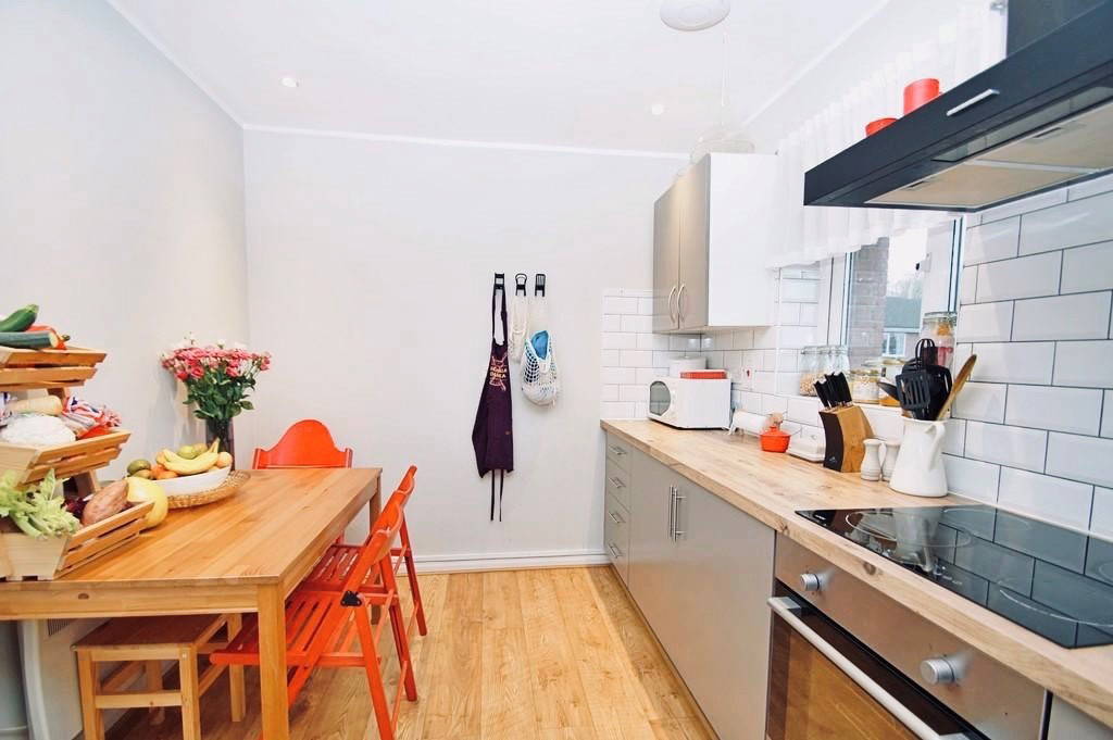 KITCHEN/DINER 12' 9" x 8' 3" (3.89m x 2.51m) A range of eye and base level units surmounted by contrasting worksurfaces. Composite granite one and a half bowl sink and drainer with a mixer tap over. Tiling to splash back areas. Built-in oven with four ring electric hob and extractor hood over. Space for up-right fridge freezer. Space and plumbing for a washing machine. Wall mounted electric heater. Two uPVC double glazed windows to the rear aspect.