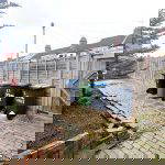 Externally, the property benefits from a low-maintenance rear garden with pedestrian access. The garden features a patio seating area, a lawned section, a slabbed pathway, and a selection of established flower beds, creating a pleasant outdoor space suitable for both relaxation and entertaining.