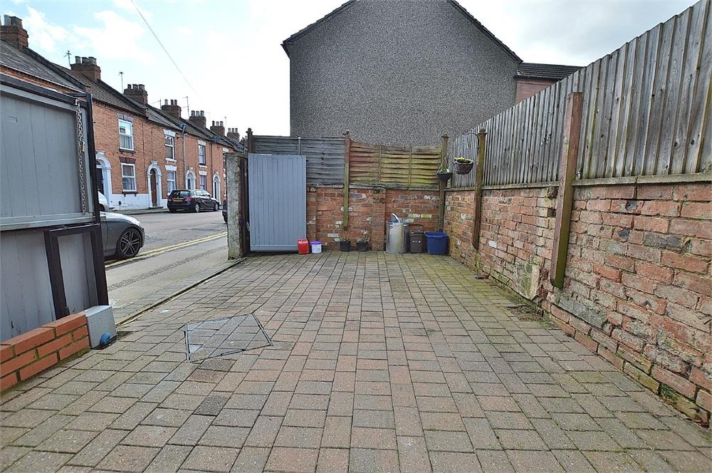 Enclosed garden area which is block paved. There is gated vehicle access and off road parking space for one car.